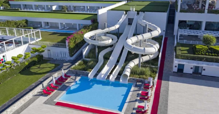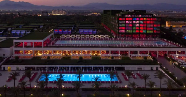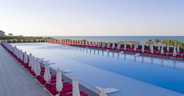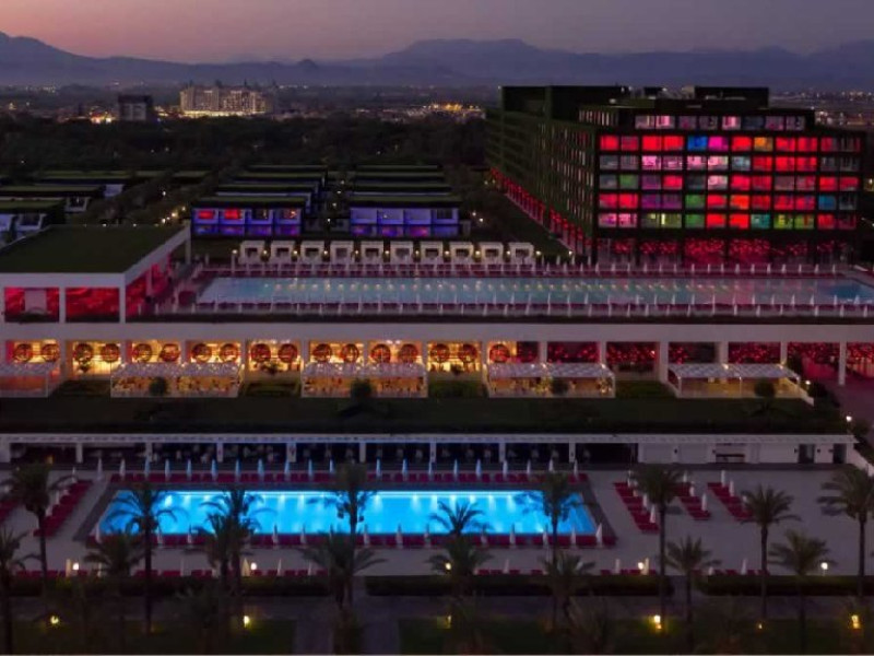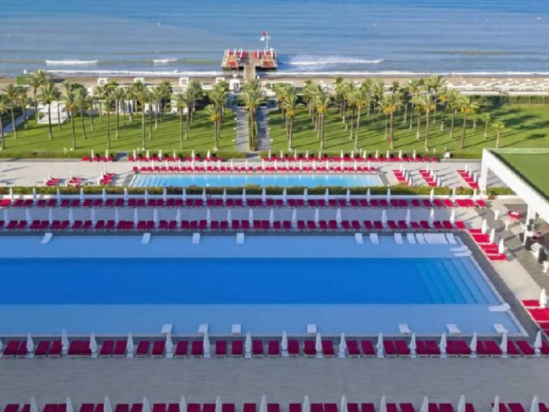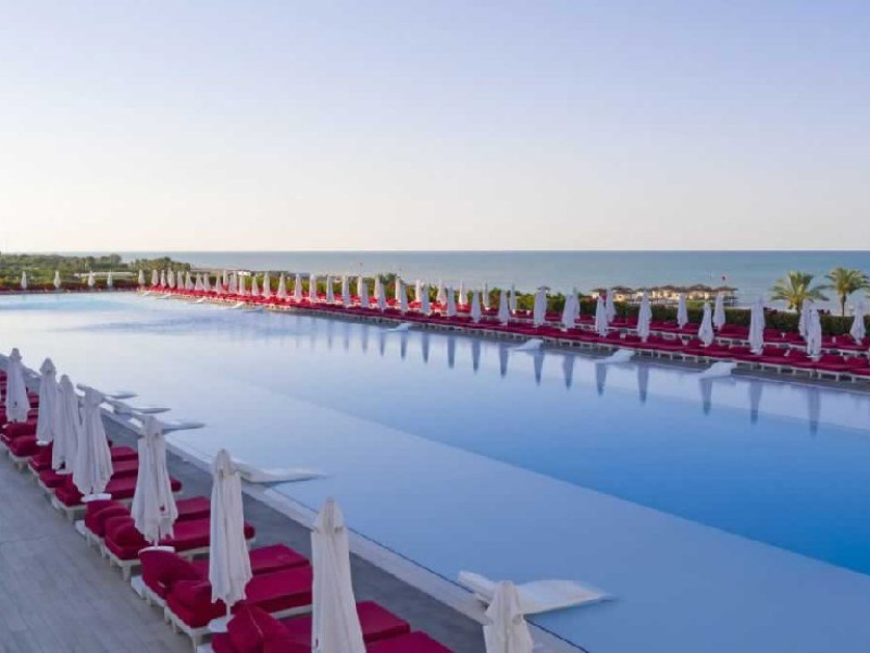 Facilitati hotel: Hotelul ofera oaspetilor sai urmatoarele facilitati: restaurant principal, 7 restaurante a la carte (turcesc, pescaresc, italienesc, sushi-teppenyaki, steak house, afrodisiac si blind - cina in intuneric), patiserie, bistro, lounge cu specific italienesc, 7 baruri, piscina principala (936 mp), piscina exterioara pentru relaxare (650 mp), piscina cu tobogane (160 mp), piscina pentru zona de vile, piscina interioara incalzita (455 mp), muzica live, spectacole cu lumini si lasere, programe de animatie, discoteca, amfiteatru, spectacole de acrobatii, 2 sali de cinema, petreceri cu DJ, zona cu magazine, centru business, spalatorie si curatatorie, inchiriere masini, fotograf, coafor, cabinet medical, internet wireless, centru Eden Spa (5.500 mp), baie cu aburi, sauna finlandeza, baie turceasca (256 mp), sauna ruseasca, jacuzzi, centru fitness (500 mp), aerobic, volei pe plaja, biliard, tenis de masa, squash - rachete si mingi, tenis cu rezervare, sala de sport, volei, basket, mini-fotbal, pilates, lectii de dans, step, yoga, gimnastica in apa, sali de conferinte.