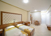 Dotari camere: Hotelul Angelina are 50 de camere si apartamente pentru 2, 3 si 4 persoane, la parter, primul si al doilea etaj.Toate camerele au, baie privata cu dus, chicinet cu 2 plite electrice, frigider, prajitor de paine, ceainic, TV prin satelit, aer conditionat, room service(contra cost), seifuri, telefon.