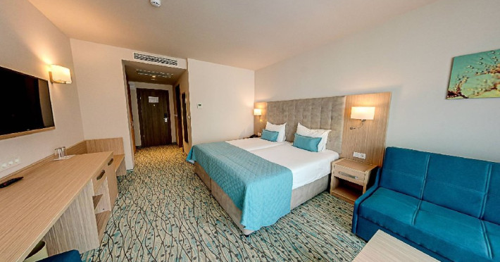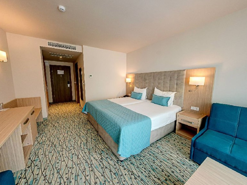 Localizare: Hotel Astoria 4* este situat in partea centrala a statiunii Nisipurile de Aur, la 200 m distanta de centru si diverse magazine. Facilitati hotel: Hotelul este dotata cu plaja privata cu sezlonguri si umbrele, restaurant principal cu terasa cu vedere la mare, restaurant asiatic si restaurant italian - care este transformat in restaurant de gustari ziua, 4 baruri, Cakeit!, 2 piscine exterioare, piscina interioara (incalzita in aprilie, mai, septembrie si octombrie), prosoape pentru piscina/plaja, piscine separate pentru copii (exterioara si interioara - incalzita in aprilie, mai, septembrie, octombrie), club pentru copii (4-12 ani), parcare contra cost, sala de fitness, tenis de masa, aqua gym, activitati sportive pentru adulti, animatie si spectacole, centru spa contra cost (masaj, sauna, hammam). Dotari camere: Camerele sunt dotate cu aer conditionat, Wi-Fi, televizor cu ecran plat, telefon, minibar, seif, canapea extensibila, baie cu cabina de dus si uscator de par, balcon/terasa.Camerele economy/promo si camerele duble standard sunt dotate cu 2 paturi twin si zona de relaxare cu canapea. Camerele duble standard pot avea vedere directa spre mare sau vedere laterala. Camerele duble superioare sunt dotate cu un pat dublu, zona de relaxare cu canapea extensibila, majoritatea sunt cu vedere laterala la mare (doar cateva au vedere directa la mare). NOU in 2024: mini bar gratuit, facilitati pentru preparare ceai si cafea, geanta de plaja. Camerele family dispun de un dormitor cu pat dublu si un living separat cu un pat de 100 x 200 cm si o canapea extensibila sau 2 paturi de 100 x 200 cm. Site web: https://www.hotelastoria-bg.com/en/