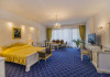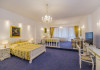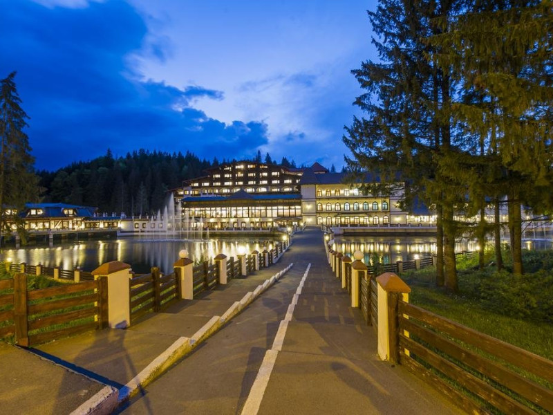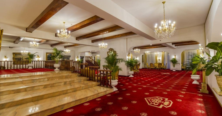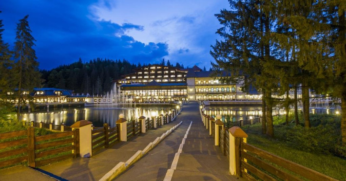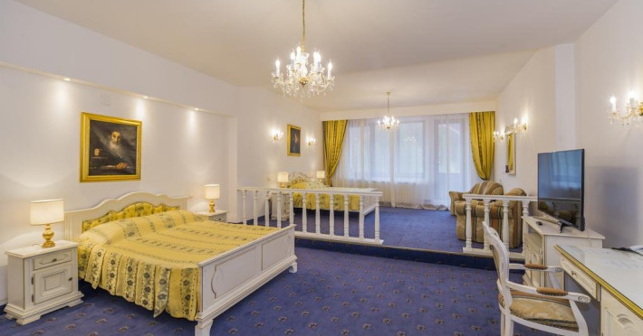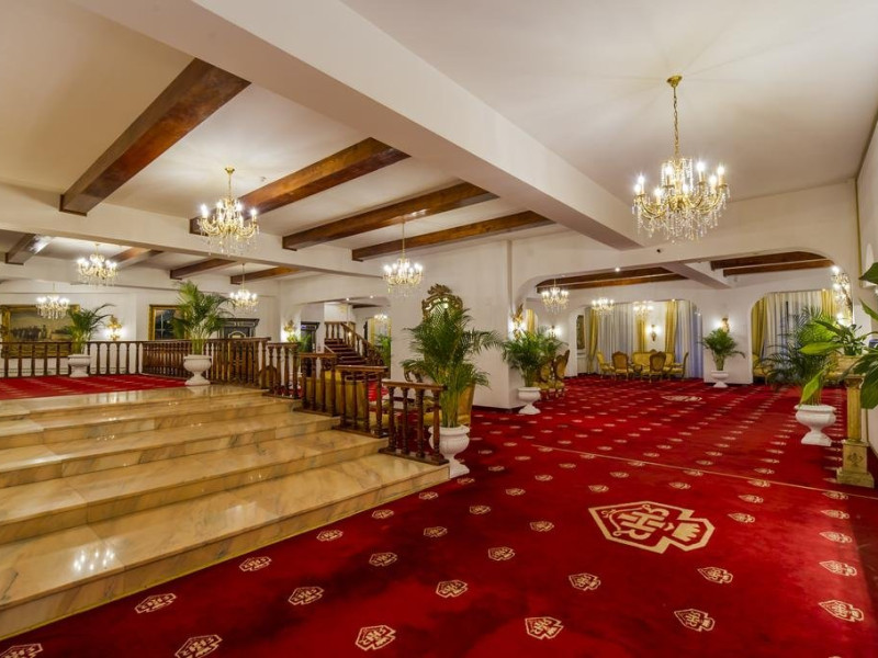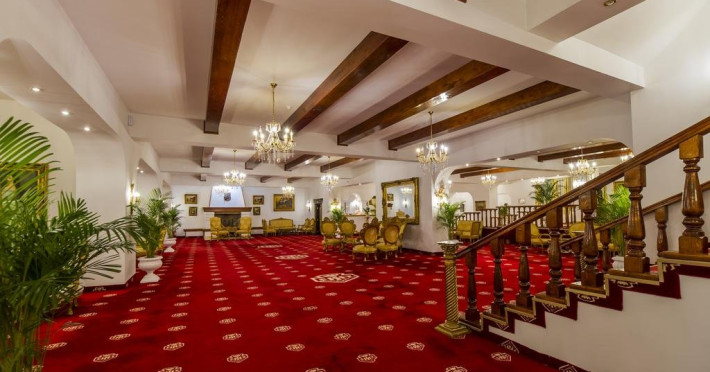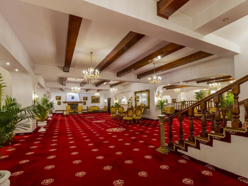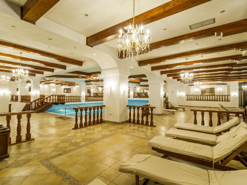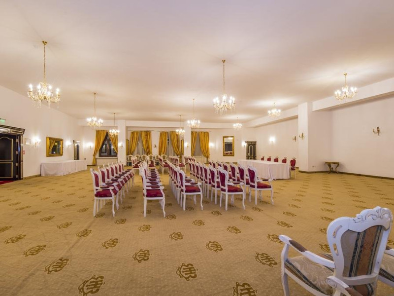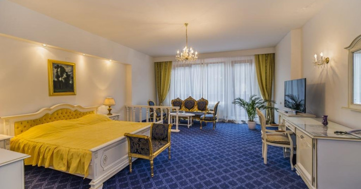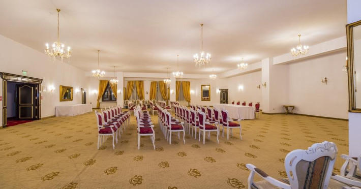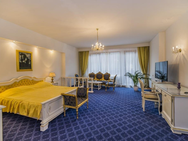 Cazare : Oaspetii au la dispozitie 208 locuri de cazare, in 93 de camere dotate cu baie proprie, aer conditionat, cablu TV, telefon, radio, minibar, sala de conferinta, jacuzzi, sauna, sala de intretinere/sport:15 superior room (60 mp),36 deluxe room ( 100 mp),15 executive room (120 mp),20 premier suite,7 deluxe suite (200 mp).Spatiile de cazare sunt mari si luminoase, mobilate luxurios, in stilul "Imparatul Romanilor" iar arhitectura interioara este foarte variata.