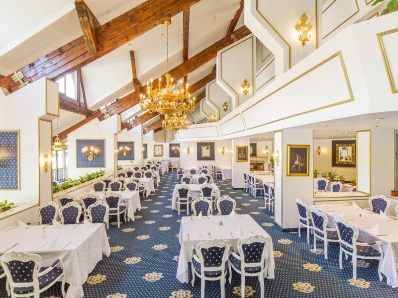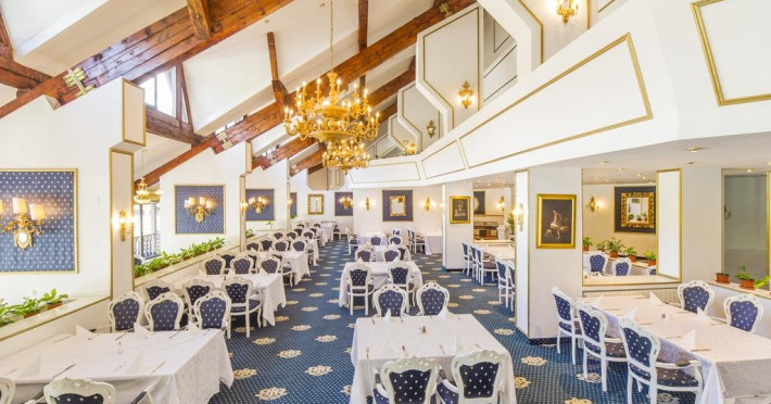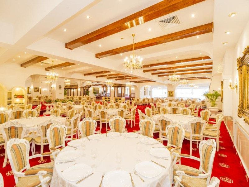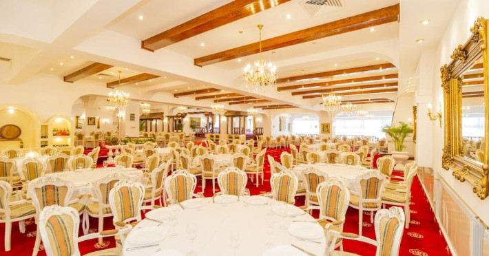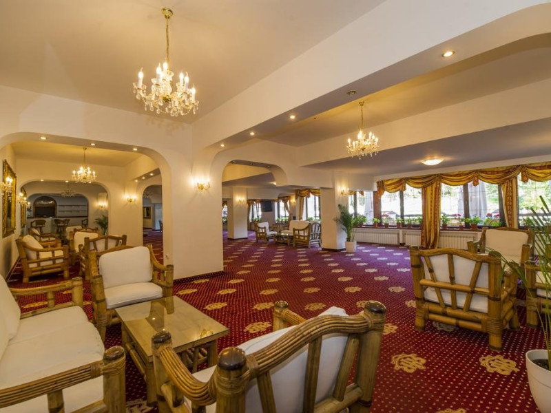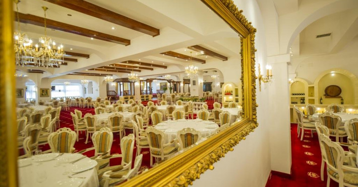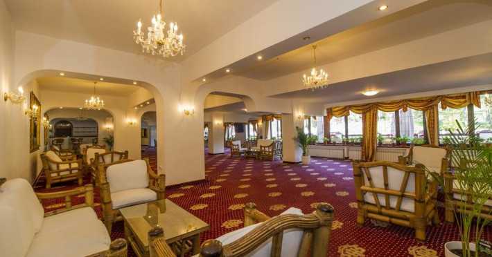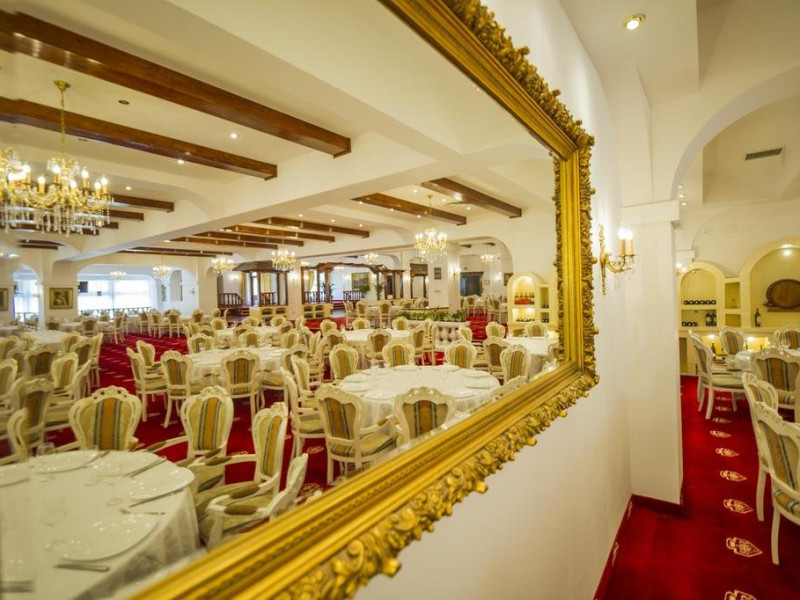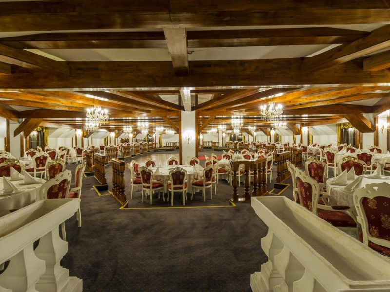 Servicii de masa : Renovat si decorat in stilul "Imparatul Romanilor" restaurantul are 350 de locuri si ofera posibilitati de amenajare pentru servirea mesei, pentru spectacole sau conferinte.Salonul Miorita are o capacitate de 300 de locuri dispuse pe 2 niveluri, unite printr-o scara de acces,ideal pentru a admira locul luminat de razele diminetii in timp ce savurati micul dejun. Oferta culinara imbina cele mai bune traditii locale cu rafinamentul.
