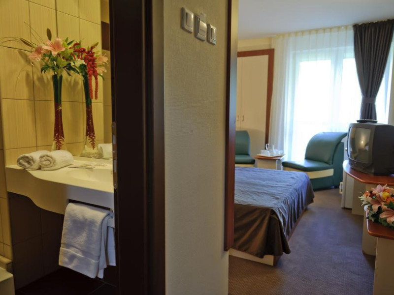 Hotelul dispune de lift, seif la receptie, restaurant, sala de conferinte, bar de zi, terasa, acces direct spre baza de tratament si agrement (piscina, sauna, sala de fitness, solar, masaj). Camerele sunt renovate, dotate cu mobilier nou, telefon, televizor, cablu, baie proprie.Camerele confort 2 stele sunt situate la etajele 1 si 6, nu au balcon, camerele situate la celelalte etaie sunt dotate cu frigider si minibar, fiind omologate la 3 stele. Restaurantul situat la parterul hotelului, are o capacitate de 400 de locuri si este dotat cu aparate pentru purificarea aerului si instalatie pentru aer condrtionat.