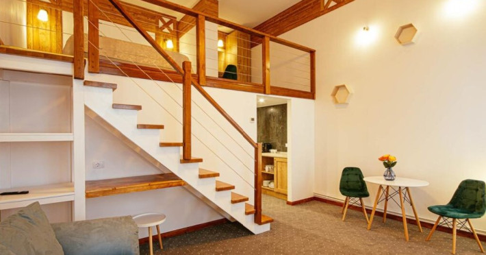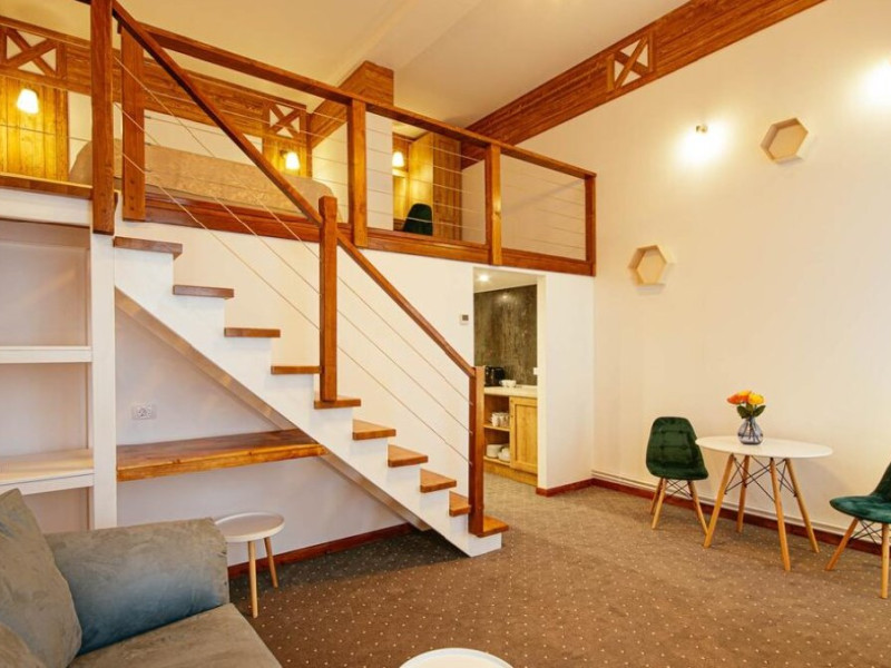Amplasat in centrul municipiului CAempulung Moldovenesc, intr-o cladire monument istoric, construita in anul 1896 la ordinul imparatului Franz Joseph si recent renovata, Buchenland Hotel, al carui nume provine din denumirea in germana a regiunii Bucovina, te invita sa descoperi confortul camerelor si a suitelor supraetajate, toate spatiile avand inaltimea de 5m, geamuri inalte si suprafete cuprinse intre 27 si 45 mp. Hotelul are capacitatea de 14 locuri de cazare in doua camere duble, o suita standard si o suita deluxe, toate ultradotate si amenajate la standarde inalte. Hotelul dispune de acces non-stop pe baza de cod si cartela, chicineta, sauna, jacuzzi si spatiu exterior destinat fumatorilor.