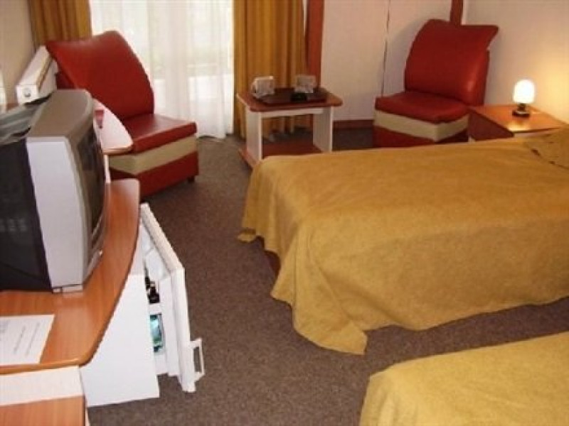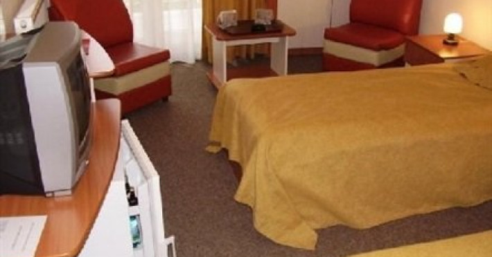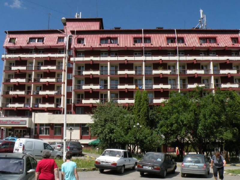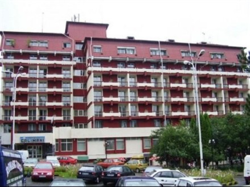 Despre Hotel Calimani, Vatra Dornei prezentare hotel, facilitati si servicii oferiteSituare: Hotelul Calimani intregeste ansamblul hotelier, avand culoar de legatura cu hotelul Bradul si cu baza de tratament si agrement Hotelul si-a schimbat infatisarea, avand o receptie zugravita in culori calde, primitoare, pavata cu marmura de un colorit care linisteste sufletul venit la odihna sau tratament. Dotari generale: 4 apartamente (living si dormitor), 89 camere duble, restaurant, sala de conferinte, bar de zi, terasa, acces direct spre baza de tratament si agrement (piscina, sauna, sala de fitness, solar, masaj). Dotari camere: Camerele sunt renovate, dotate cu mobilier nou, telefon, televizor, cablu, baie proprie.Camerele confort 2 stele sunt situate la etajele 1 si 6, nu au balcon, camerele situate la celelalte etaje sunt dotate cu frigider si minibar, fiind omologate la 3 stele. Servicii de masa: .se acorda in restaurantul propriu, situat la parterul hotelului, avand o capacitate de 400 de locuri si fiind dotat cu aparate pentru purificarea aerului si instalatie pentru aer conditionat. Tratament: baza de tratament si agreement cu acces direct din/spre hotel si recent modernizata. Proceduri: hidrokinetoterapia in piscina incalzita, dus subacval si dus Jacuzzi, dus scotian, masaj general, solar, sauna, sala de fitness. Explorari functionale: -electrocardiografie, oscilometrie, osteodensitometrie, testare glicemie. In zilele de sambata si duminica nu se efectueaza tratament balnear.