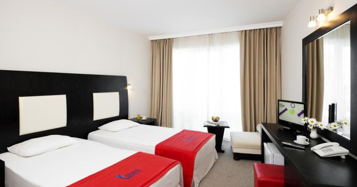 Localizare: La 350 de metri de plaja si de renumita plaja Cacao Beach, in partea de sud a statiunii. PLAJA: - plaja publica, cu nisip: umbrele de soare si sezlonguri contra cost - umbrele de soare si sezlonguri gratuite langa piscina Facilitati hotel: Hotelul pune la dispozitia turistilor restaurant cu terasa, Coffe Break Corner, bar la piscina, aer conditionat in zonele publice, Wi-Fi in zonele publice (contra cost), parcare pazita (contra cost). Dotari camere: Camerele sunt dotate cu TV, telefon, Wifi, mini frigider, aer conditionat, balcon. Site web: https://www.calypso.bg/en