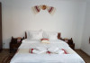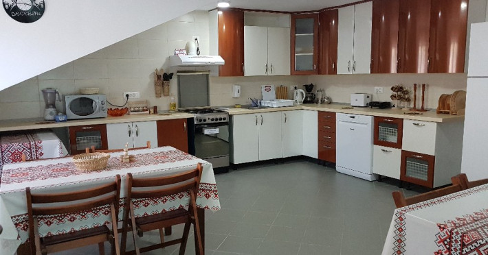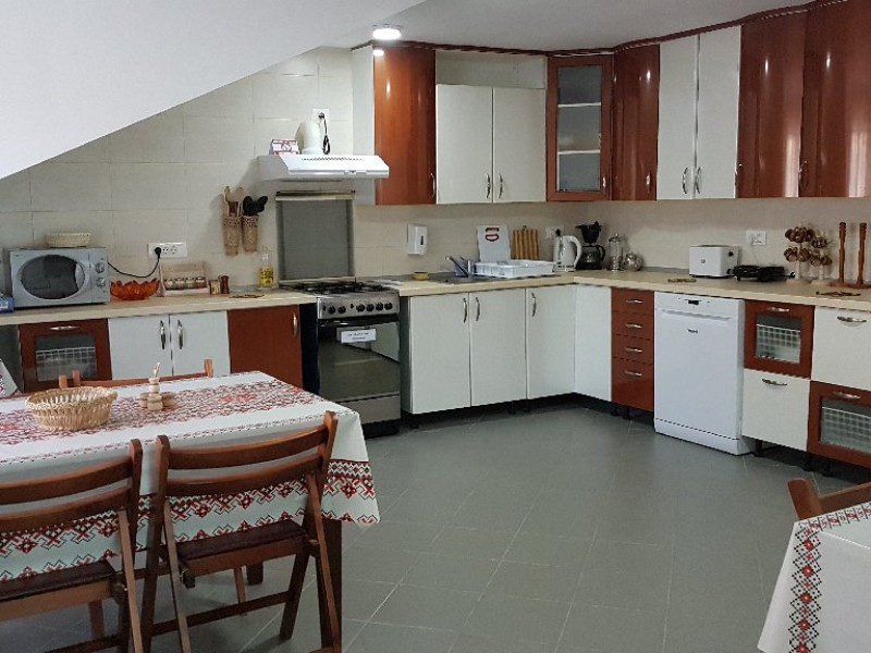 Casa dispune de 1 apartament, 1 camera cvadrupla, 1 camera tripla, 2 camere duble si 1 camera dubla economy, completate cu un living cu semineu, o baie de serviciu si o bucatarie complet utilata, in care modernul cu traditionalul se imbina armonios. Casa dispune de incalzire cu centrala proprie pe gaz, centrala pe lemne si apa calda si caldura non-stop.