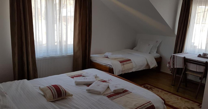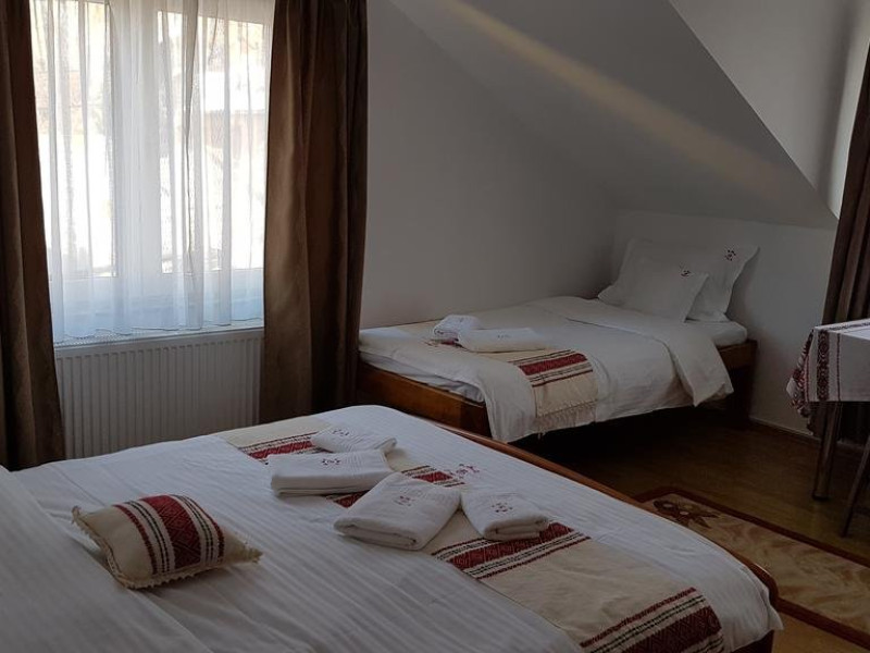 Toate camerele au bai proprii cu cabina de dus, TV LED, uscator de par, articole de baie. Oaspetii nostri au la dispozitie internet WiFi gratuit si nelimitat, parcare supravegheata video, gratar. Oferim oaspetilor nostri lemne pentru aprins gratarul si sugestii privind obiectivele de vizitat in zona. Pentru relaxare, oferim turistilor jocuri de societate: jocuri de rummy, table, carti, sah etc.