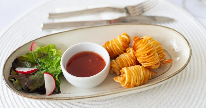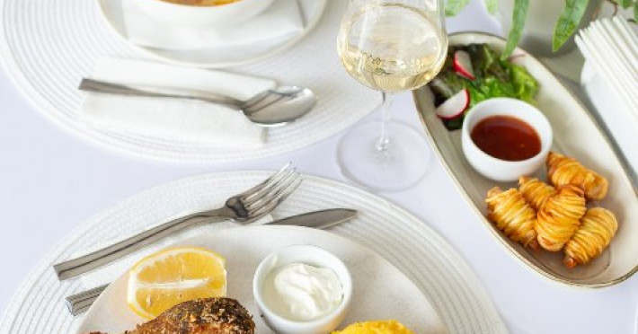 Restaurantul a la carte propune un meniu variat, cu preparate pescaresti proaspete, retete traditionale si preparate internationale, realizate cu ingrediente locale si atentie la detalii.