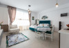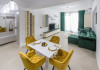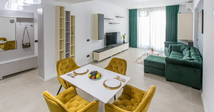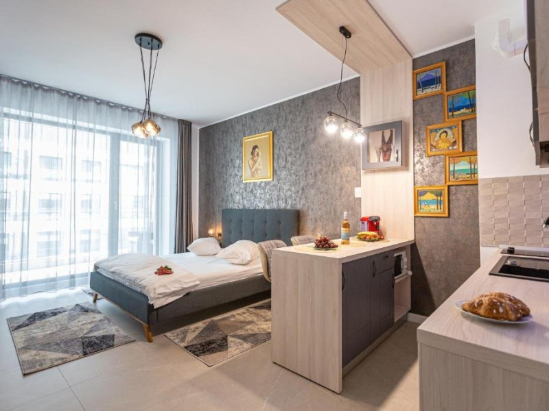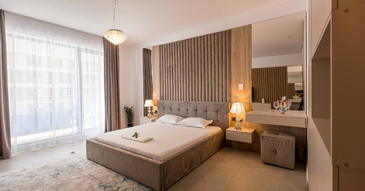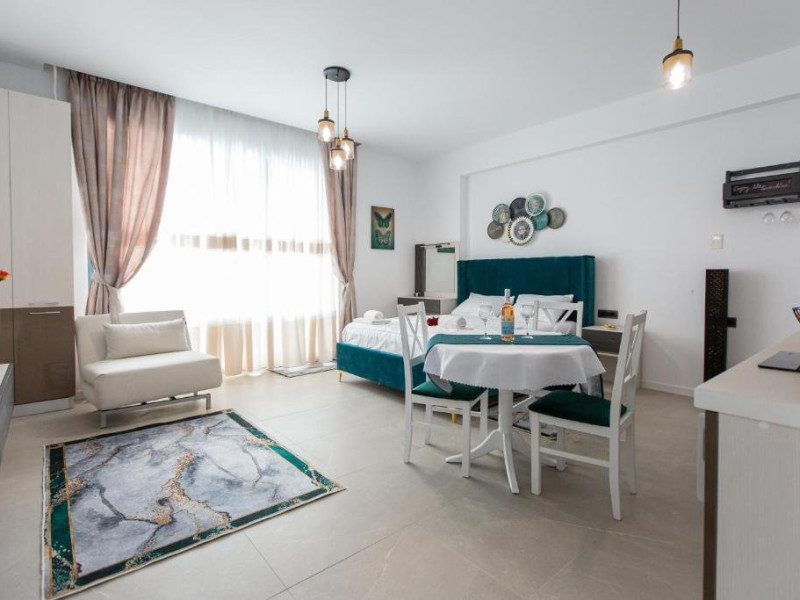 Dotari camere Studio-urile sunt formate dintr-un spatiu amenajat cu pat matrimonial si o chicineta dotata cu masa, frigider, cafetiera, plita electrica, prajitor de paine, cuptor cu microunde, ustensil, balcon si baie cu dus, aer conditionat, internet si televizor si au vedere laterala la mare. Apartamentele cu 2 camere sunt formate din living, dormitor, chicineta dotata cu masa, frigider, cafetiera, plita electrica, prajitor de paine, cuptor cu microunde, ustensile si baie, televizor, internet, aer conditionat. Apartamentele cu 3 camere sunt formate din living, 2 dormitoare, chicineta dotata cu masa, frigider, cafetiera, plita electrica, prajitor de paine, cuptor cu microunde, ustensile si bai, televizor, internet, aer conditionat.