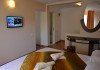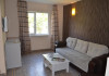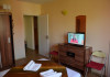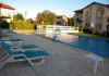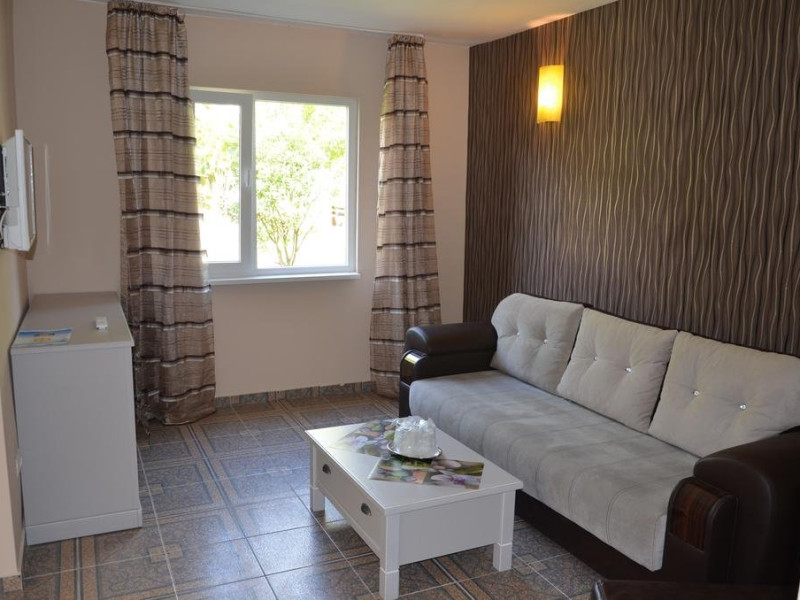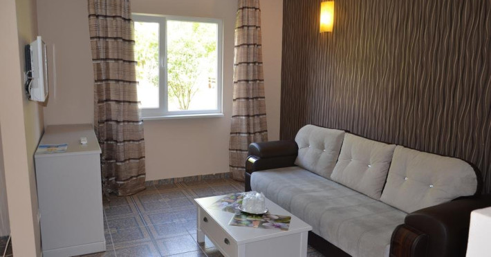 Apartament Confort/ Apartamentele tip Confort sunt apartamente duplex suprafata de 90 m.p. si se adreseaza familiilor cu mai multi membri sau pentru doua familii cu copii fiecare. Apartamentele au urmatoarea structura: - parter: living, chicineta dotata cu plita de gatit cu doua ochiuri pe gaz , seturi complete de tacamuri, pahare, farfurii pentru 4-6 persoane, frigider, terasa cu mobilier de exterior si zona de servit masa, peluza proprie si gratar. La parter apartamentul dispune de o canapea extenibila in living si un grup sanitar. - etaj: doua dormitoare, fiecare cu aer conditionat si balcon si al doilea grup sanitar. Capacitatea minima este de 4 persoane adulte platitoare si maxima de 6 persoane adulte.