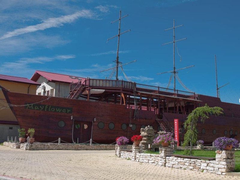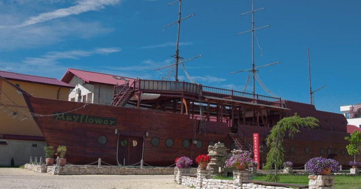 Pentru a intregi imaginea aparte a clubului, aici veti gasi replica celebrei corabii MAYFLOWER, ce gazduieste restaurantul, puntea fiind destinata terasei si barului.