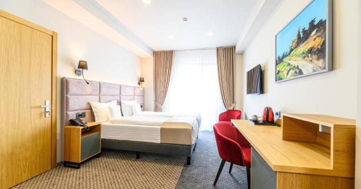 Situat convenabil chiar in centrul orasului, Hotel Dukat este cea mai noua locatie hoteliera din Gura Humorului. Fie ca ne vizitati in interes de afaceri, fie ca veniti in vacanta cu familia, suntem siguri ca veti aprecia atmosfera placuta, special conceputa pentru a va oferi o experienta memorabila. Va oferim toate serviciile si facilitatile de care aveti nevoie pentru a va simti cat mai agreabil in timpul sejurului dumneavoastra. Servicii de cazare excelente in camere spatioase si confortabile, o varietate de optiuni de luat masa, o sala destinata evenimentelor, dar si spatii comune in care puteti sa va relaxati oricand pe parcursul zilei.