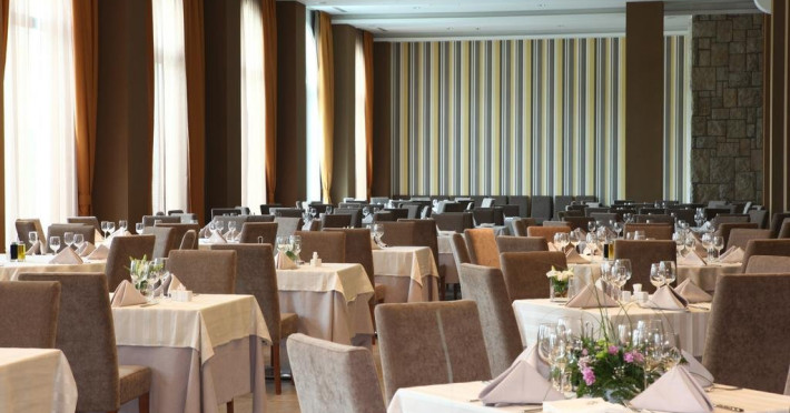 15. Regimul demipensiune este format din mic dejun si pranz/ cina. Oaspetii trebuie sa isi aleaga tipul mesei de la momentul rezervarii. Micul dejun Lai prAenzul se servesc incepAend cu a doua zi de cazare Lai inclusiv in ziua plecrii. Aan prima zi se intr cu cina, doar in cazul achizitionarii pensiunii complete sau demipensiunii cu cina. Serviciile de masa platite in avans, mic dejun, pranz sau cina se servesc in regim bufet in cazul in care se asigura numarul de minim 30 persoane, in caz contrar va fi disponibil un serviciu set menu. Pentru accesul la pranz/ cina este obligatorie purtarea bratarii inmanata la receptie la momentul cazarii; Demipensiunea/ pensiunea completa se serveste in interiorul celor doua restaurante (Ballroom sau Coriolis), terasa restaurantului este destinata doar oaspetilor a la carte.
