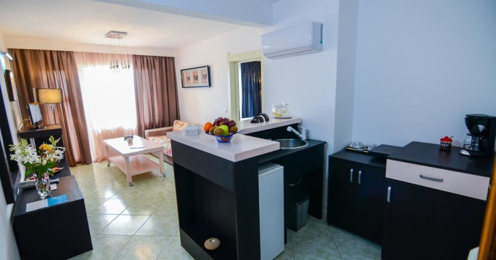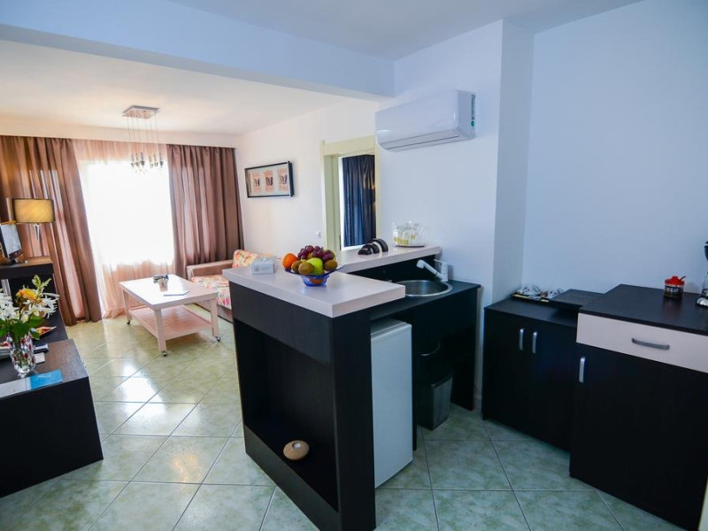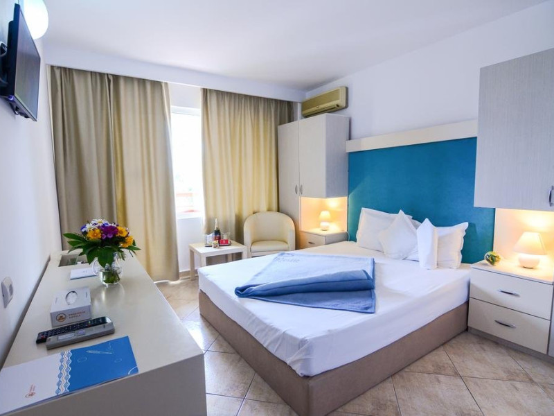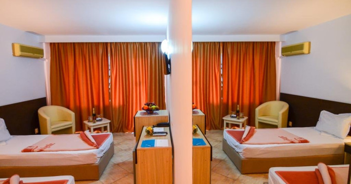 Camerele duble (20mp) sunt dotate cu pat matrimonial (160/200 cm) sau twin (2x90/200 cm), TV, telefon, minibar, aer conditionat, internet, uscator de par, uscator de rufe, baie moderna cu dus, pardoseala cu gresie, cosmetice la baie, acces pe baza de card magnetic. Majoritatea camerelor din cadrul hotelului sunt prevazute cu balcon mobilat. Capacitate maxima: 2 adulti + 2 copii < 14 ani (neimpliniti) sau 3 adulti cu pat suplimentar; Dublele family (25mp) sunt camere duble cu suprafata mai mare, dotate cu pat matrimonial, TV, telefon, minibar, aer conditionat, internet, podele de gresie, acces pe card magnetic, o canapea modulara extensibila, baie cu dus, uscator de par si cosmetice hoteliere si terasa spatioasa. Pe fiecare etaj este dispusa cate o camera dubla family. Capacitate maxima: 2 adulti + 2 copii < 10 ani (neimpliniti) sau 3 adulti; Apartamentele (40mp) sunt formate din living cu canapea modulara extensibila, dormitor cu pat matrimonial, despartite de usa, chicineta si baie cu cada, uscator de par si cosmetice hoteliere. Acestea pot avea vedere laterala catre mare sau catre lacul Siutghiol. Apartamentele sunt dotate cu TV in ambele camere, telefon, aer conditionat, podele de gresie, acces pe baza de card magnetic si balcon. Chicineta este dotata cu minibar, plita electrica, fierbator, chiuveta, vesela si tacamuri, espressor cu capsule. Toate apartamentele sunt amplasate la ultimul etaj al hotelului (etajul 10). Capacitate: 3 adulti sau 2 adulti +2 copii < 14 ani (neimpliniti);