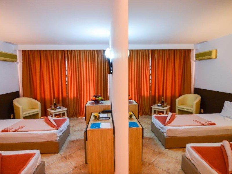 Dotari si servicii Hotelul Majestic ofera pe langa spatiile de cazare, 3 restaurante a la carte, bar, cabinet medical cu asistent medical, parcare auto in limita locurilor disponibile, internet , pastrarea obiectelor de valoare si a bagajelor, patut bebelus la cerere. Acesta are doua locuri de joaca situate atat in interiorul hotelului, cat si in exterior. Acces la terenul de sport (echipamentele se asigura in limita articolelor sportive disponibile, iar utilizarea terenului se face cu prezentarea la receptie). Piscina exterioara incalzita pentru adulti cu sezlong gratuit in limita disponibilului si piscina exterioara incalzita cu tobogan pentru copii; umbrele, hamac, gratuite la piscina in limita disponibilului; acces la aparatele de fitness de la piscina, sauna, jacuzzi, salina. Trezirea clientilor la ora solicitata/Comand taxi; Jocuri divertisment (sah, table, carti de joc, tenis de masa) In perioada 30.05 30.06.2025 si 01.09 14.09.2025, piscinele exterioare vor fi incalzite pana la 25-27 grade. SERVICII OPTIONALE (contra-cost): Plaja privata,Salon de masaj la piscina, Billiard, Bar lobby hotel, Cafenea&Narghilea, Inchiriere sali de conferinta. Este obligatorie purtarea bratarilor primite la check in pentru a beneficia de serviciile contractate.