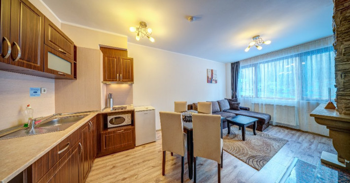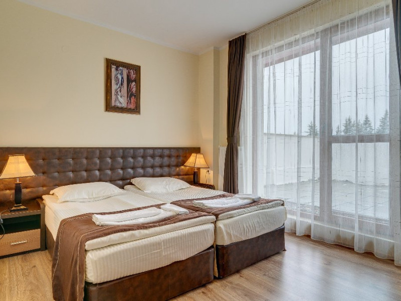 Localizare: Apart-hotelul Kamelia are o locatie excelenta, partiile de schi fiind la doar cativa pasi distanta. Statia cea mai apropiata a telescaunului se afla la doar 250 de metri distanta, iar centrul statiunii este la aproximativ 1,5 km. Construit in 2011. Dotari camere: Camerele sunt dotate cu chicineta (masa cu scaune, frigider, cuptor cu microunde, tacamuri si ustensile, facilitati pentru prepararea cafelei, prajitor de paine, aragaz, hota), televiziune prin satelit, telefon, uscator de par, baie cu cabina de dus; apartamentele au, de asemenea, balcon si semineu. Fierul si masa de calcat pot fi inchiriate de la receptie. Halatele de baie pot fi inchiriate la receptie, contra cost. Facilitati hotel: Hotelul pune la dispozitia clientilor receptie, seif disponibil pentru inchiriat (contra cost), room service (contra cost), Wi-Fi, depozit de schi pentru echipament propriu, bar, restaurant principal, gratar, mehana (restaurant traditional bulgaresc), teren de joaca multifunctional in aer liber, SPA, jacuzzi, saun cu plante, hammam, piscina interioara, babysitting (la cerere, contra cost), jocuri electronice (contra cost), scoala de schi pentru copii (contra cost, pentru copii cu varsta intre 4 si 8 ani), tenis de masa (contra cost), biliard (contra cost), masaj (contra cost), tratamente SPA (contra cost). Animale de companie NU sunt permise. Parcare exterioara gratuita, in functie de disponibilitate. Parcare subterana contra cost. Nota informativa: Pentru anumite facilitati din hotel sau din camera, hotelierul poate solicita taxe suplimentare. In momentul sosirii la hotel solicitati receptionerului sa va informeze cu exactitate asupra lor. Website-ul hotelului: www.kamelia-hotel-pamporovo.com
