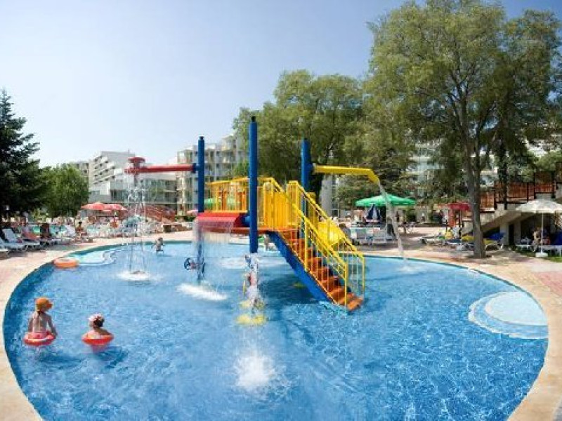 Cladirea eleganta cu sapte etaje si forma arhitectonica in terasa si dispune de 145 camere. Localizare: la 150 metri de plaja, la inceputul strazii comerciale din statiune. Dotari camera: balcon, baie, aer conditionat, telefon, televizor, minibar; frigider si seif la cerere. Facilitati hotel: restaurant principal, lobby bar, snack bar, piscina exterioara, bar langa piscina, piscina pentru copii, club pentru copii, magazine, salon pentru masaj, coafor, programe de animatie, activitati sportive, tenis de masa, volei pe plaja, fotbal, basket, aerobic, darts, sah, spalatorie si curatatorie, acces internet, seif la receptie, casa de schimb valutar, sala de conferinte, inchiriere masini, parcare.