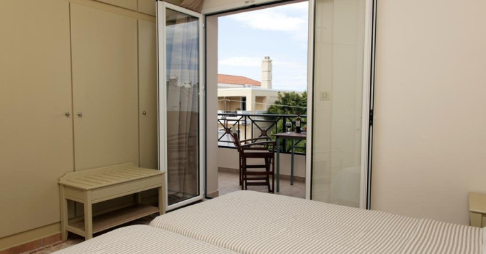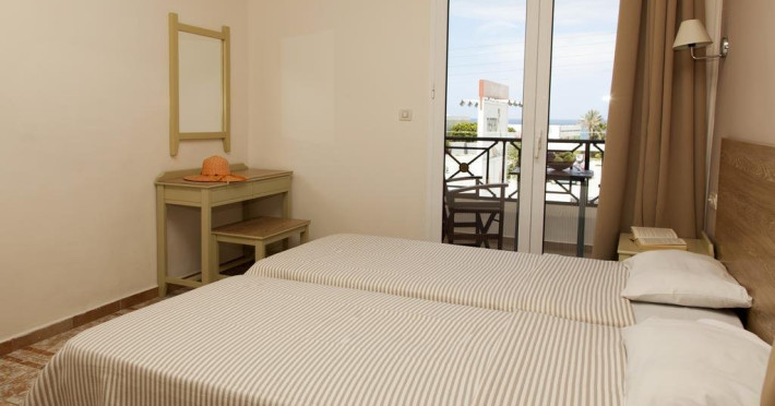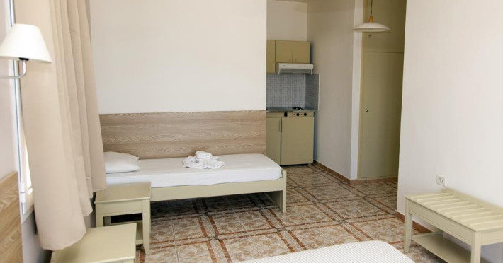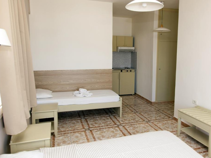 Localizare: in Agia Marina la aproximativ 150 m de plaja de nisip, 9 km de Chania si 20 km de aeroportut din Chania. Dotari camere: aer conditionat, televizor, mini bucatarie, fierbator de apa, facilitati pentru ceai/cafea, frigider, uscator de par, acces internet WiFi (gratuit), balcon/terasa. Facilitati hotel: restaurant, bar, acces internet WiFi (gratuit). Nota informativa: Pentru anumite facilitati din hotel sau din camera, hotelierul poate solicita taxe suplimentare. In momentul sosirii la hotel solicitati receptionerului sa va informeze cu exactitate asupra lor. Taxa de statiune obligatorie - se plateste la receptie: - 0,5 euro/camera/noapte la hotel 1-2*; - 1,5 euro/camera/noapte la hotel 3*; - 3 euro/camera/noapte la hotel 4*; - 4 euro/camera/noapte la hotel 5*; - 0,5 euro/noapte/apartament sau studio la unitatile de cazare tip apartamente si studiouri.