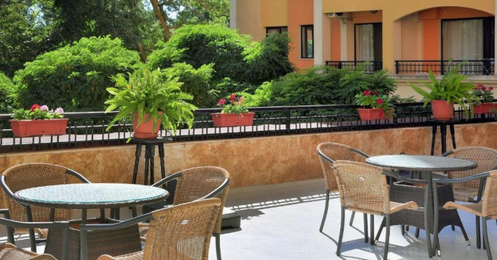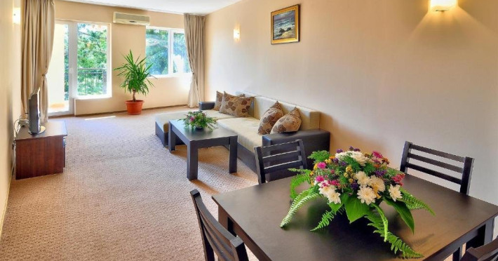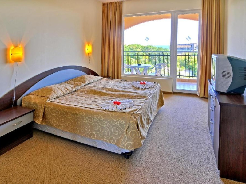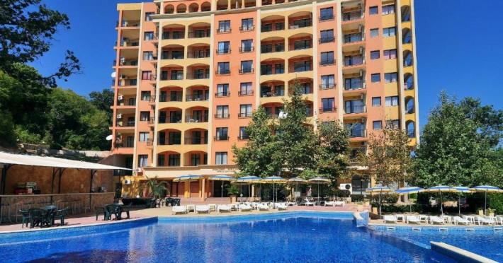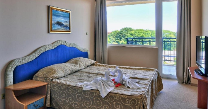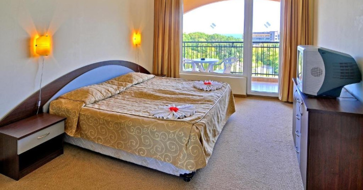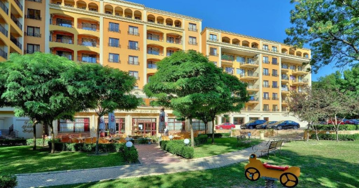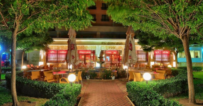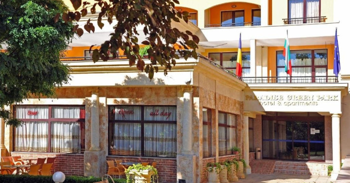 Localizare: Hotelul se afla la 600 de metri de plaja. Este construit intr-o zona linistita din vestul statiunii Nisipurile de Aur. Facilitati hotel: Hotelul pune la dispozitia turistilor receptie, restaurant, servicii de curatenie (spalatorie/calcatorie contra cost), seif (contra cost), parcare (contra cost), piscina. Dotari camere: Camerele sunt dotate cu bucatarie (poate fi dotata cu ustensile de bucatarie, la un cost suplimentar), balcon, aer conditionat, TV, uscator de par, articole de toaleta. Site web: https://www.paradisegreenparkhotel.com/bg/