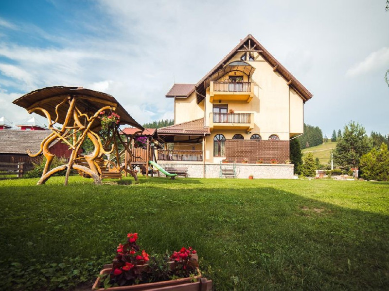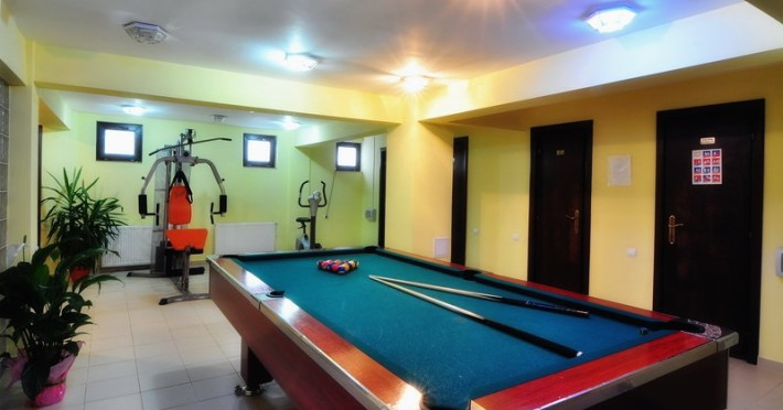 Spatiul amenajat pentru servirea mesei are o capacitate de 80 locuri. Terasa in aer liber, foisorul cu gratar si iazul cu peste va ofera posibilitatea de a lua masa inconjurati de mireasma florilor de gradina. Sauna va asteapta sa va destindeti, sa va relaxati, sa va incarcati de energie pozitiva.