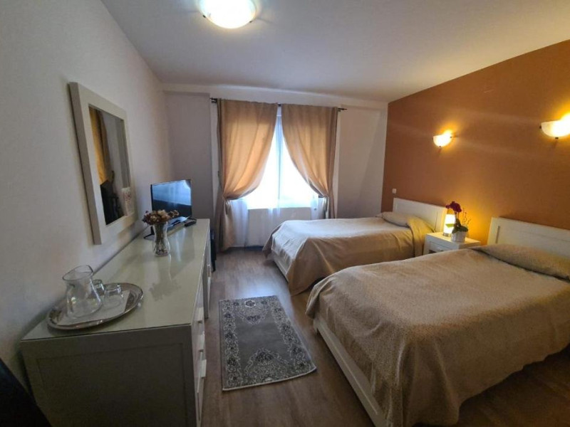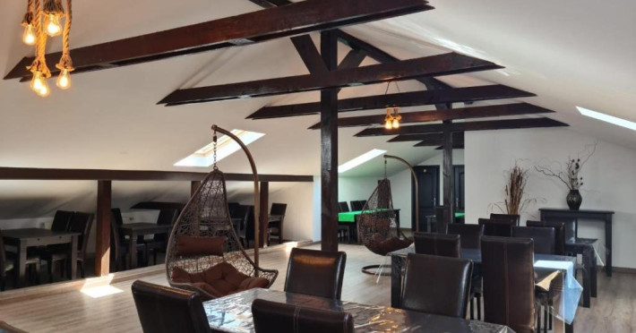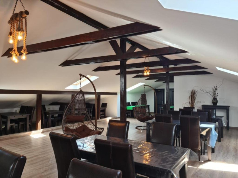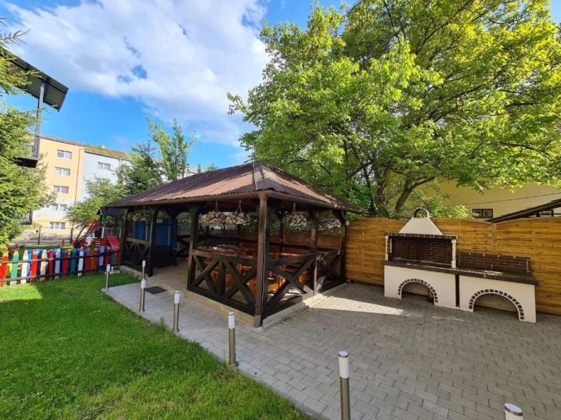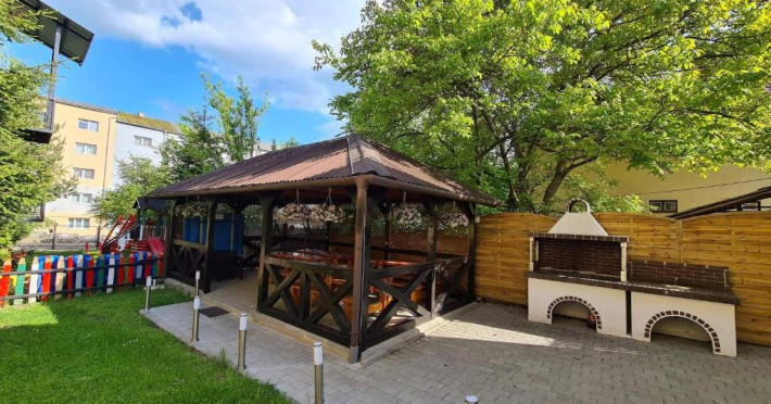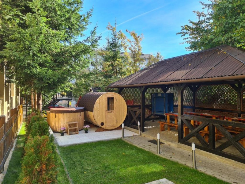 Situata la 800 m de centrul orasului Gura Humorului, intr-o zona linistita, in apropierea padurii, locatia dispune de 13 camere cu o capacitate de maxim 30-35 de locuri de cazare in regim hotelier. Va punem la dispozitie mai multe tipuri de spatii de cazare: camere cu pat matrimonial, duble twin, camere triple, o garsoniera. Toate camerele au baie proprie si TV cablu si sunt situate la etajul 2, accesul facandu-se exclusiv pe scari (nu este lift). La mansarda se afla o sala multifunctionala si o mini-bucatarie la dispozitia turistilor unde acestia isi pot pregati micul dejun, pot organiza petreceri, intalniri si conferinte. Locatia dispune de sauna si hot tub SPA jacuzzi cu cromoterapie. Accesul la facilitatile SPA se face contracost, pe baza de programare si in functie de disponibilitate. Locatia ofera gratuit internet wirless, parcare, acces la foisor, gratar si loc de joaca pentru copii. Nu dispunem de lemne de foc pentru gratar. Parcul de agrement Arinis unde gasiti piscina si partia se afla la o distanta de aproximativ 1 km. Manastirile Voronet si Humor sunt la 6 km.