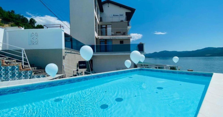 Riviera 990 - Resort & Restaurant se afla in Eselnita si are bar, restaurant, lounge comun si piscina sezoniera in aer liber. Printre facilitati se numara room-service, serviciu de concierge si Wi-Fi gratuit in intreaga proprietate. Pensiunea are gradina si terasa. Fiecare camera a pensiunii este prevazuta cu aer conditionat, dulap, TV cu ecran plat, lenjerie de pat, prosoape, baie privata si balcon cu vedere la rau. Unitatile de cazare includ si un frigider.
