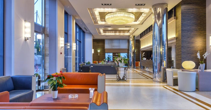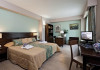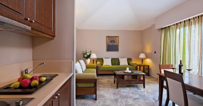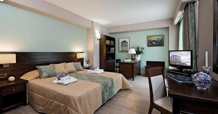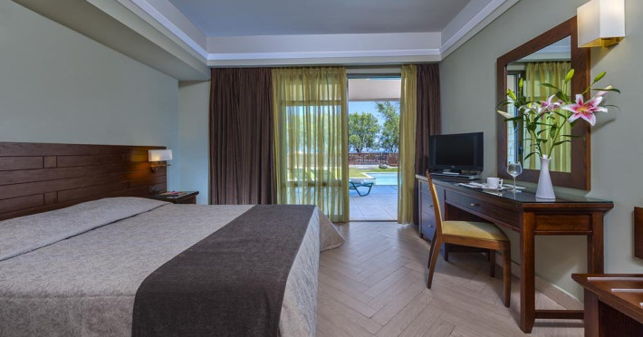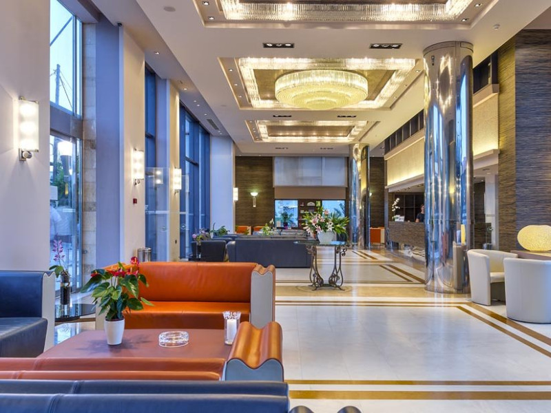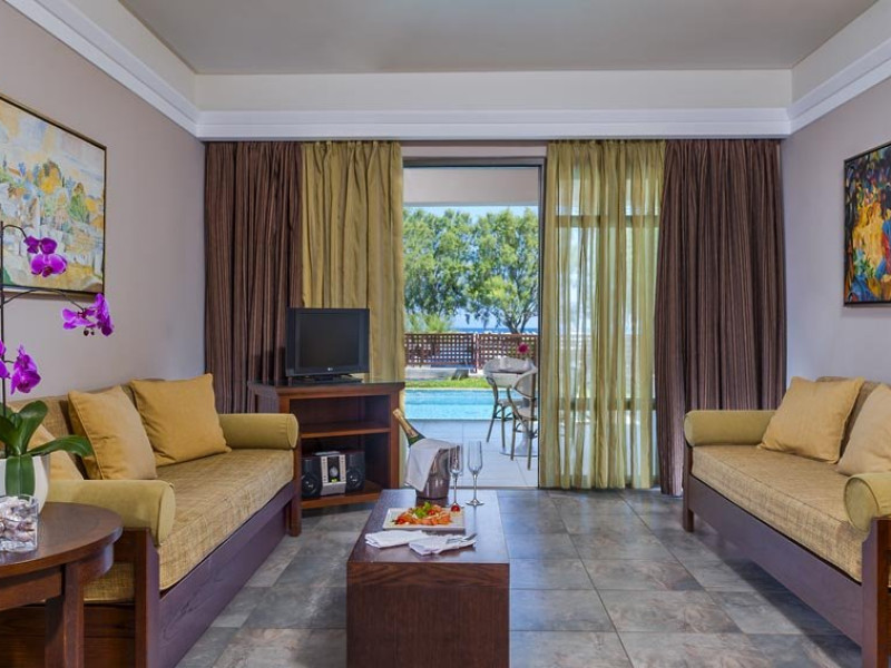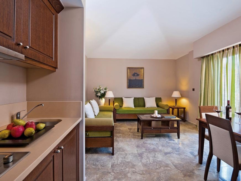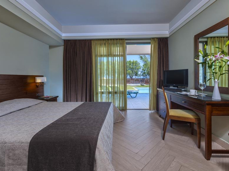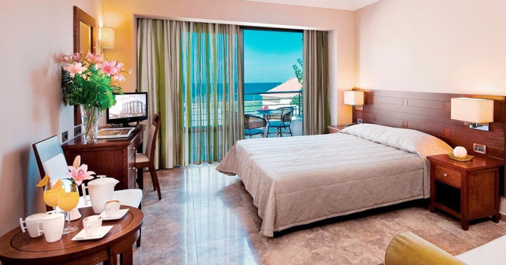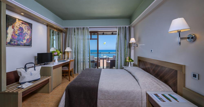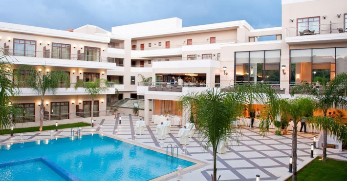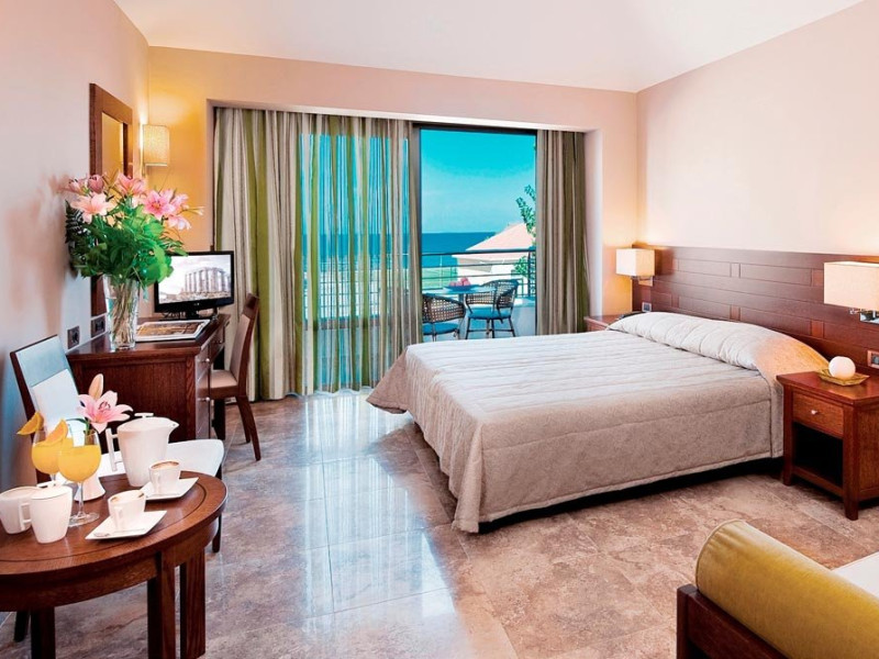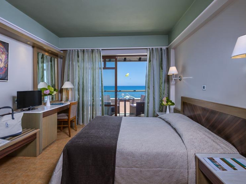 Dotari camere: Hotelul Platanias are diverse tipuri de cazare, toate camerele sunt dotate cu: frigider, baie mare de marmura cu cada, uscator de par, aer conditionat controlat individual, televizor, telefon, seif (aprox 2 EUR/zi), acces internet, minibar (la cerere), balcon sau veranda cu vedere la piscina, mare sau gradina.