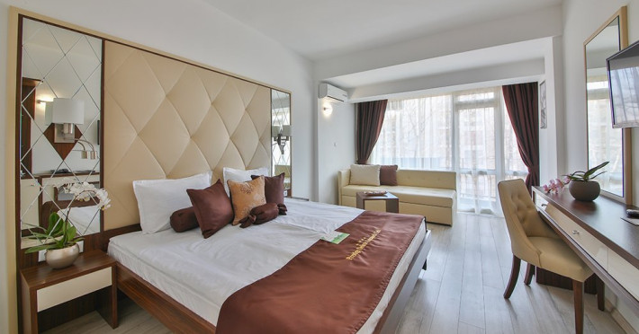 Localizare: Prestige Deluxe este situat in centrul statiunii, la doar 350 de metri de promenada si plaja, intr-o zona linistita. Construit in 2002 si renovat in 2020. Facilitati hotel: Hotelul pune la dispozitia clientilor bar, piscina in aer liber, sala de fitness, centru spa (contra cost), animatie, sala de jocuri (contra cost), parcare (contra cost), sala de fitness. Clientii hotelului pot utiliza gratuit facilitatile si serviciile hotelului din apropiere - Prestige Aquapark. Dotari camere: Camerele sunt dotate cu aer conditionat, TV, telefon, wifi, minibar, seif, baie cu cabina de dus si uscator de par. Animalele de companie nu sunt permise. Check-in dupa ora 15:00 Check-out pana la ora 11:00. Important: Pentru rezervarile efectuate pana la 08.03.2025 - Pachet plaja (1 umbrela si 2 sezlonguri la plaja per camera, incluse in pret). Plaja este departe de hotel si exista un autobuz de transfer. De mai multe ori pe zi (informatii afisate la receptie) clientii pot fi preluati de la hotel si transportati la plaja, iar acestia trebuie sa aleaga ora din timp. Pot folosi acest serviciu o singura data pe zi, la o ora fixa. Site web: https://www.prestigedeluxeaquapark.com/
