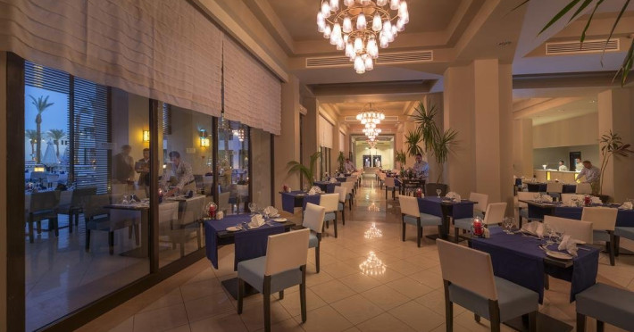 Facilitati hotel: Datorita amplasrii sale, hotelul se bucura de un paradis acvatic plin de corali si pesti tropicali, fiind locatia perfecta pentru activitati precum scufundari sau snorkeling. Hotelul beneficiaza de un aqua park cu 15 piscine si de o plaja privata cu nisip, sezlonguri si umbrelute. Oaspetii se pot bucura de terenuri de tenis, fotbal, volei pe plaja, precum si de programe de divertisment la caderea serii. Totodata, ei au acces la sesiuni de gatit, degustare de vinuri sau programe sportive precum aqua aerobic. In ceea ce priveste serviciile de masa, oaspetii pot alege dintr-o multitudine de restaurante si baruri, Mos Restaurant ramanand atractia principala in acest sens. Cei mici pot profita din plin de piscinele pentru copii, toboganele pe apa, mini discoteca si un club pentru copii (4-12 ani).