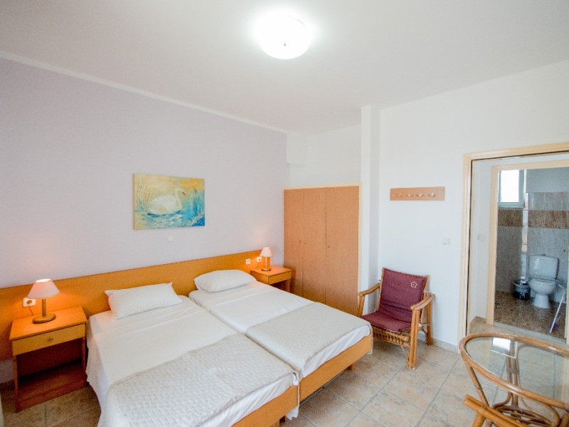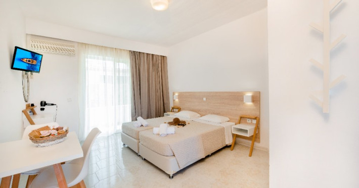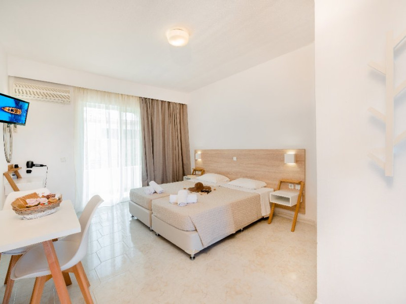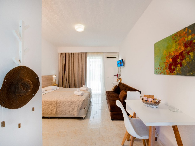 Descriere si localizare: Un mic complex amplasat in zona Afandou, la doar 200 m de plaja premiata cu Blue Flag si 20 km de aeroport. Este apreciat pentru un bun raport calitate - pret. Dotari camere: Hotelul dispune de 12 camere: studiouri de aproximativ 28 mp open plan si apartamente de 48 mp cu 2 dormitoare separate si o zona de zi. Camerele sunt dotate cu aer conditionat (gratuit), acces WiFi (gratuit), telefon, televizor, mini bucatarie (frigider, plita electrica, fierbator de apa), uscator de par, balcon/terasa. Facilitati hotel: receptie (12 ore), acces WiFi (gratuit), gradina. Sezlongurile si umbrelele pe plaja sunt contra cost. Web site: http://sokrates.gr/ Pentru anumite facilitati din hotel sau din camera, hotelierul poate solicita taxe suplimentare. In momentul sosirii la hotel solicitati receptionerului sa va informeze cu exactitate asupra lor. Taxa de statiune obligatorie - se plateste la receptie: - 0,5 euro/camera/noapte la hotel 1-2*; - 1,5 euro/camera/noapte la hotel 3*; - 3 euro/camera/noapte la hotel 4*; - 4 euro/camera/noapte la hotel 5*; - 0,5 euro/noapte/apartament sau studio la unitatile de cazare tip apartamente si studiouri.