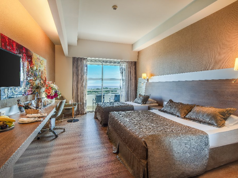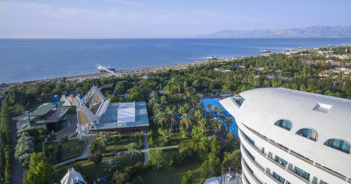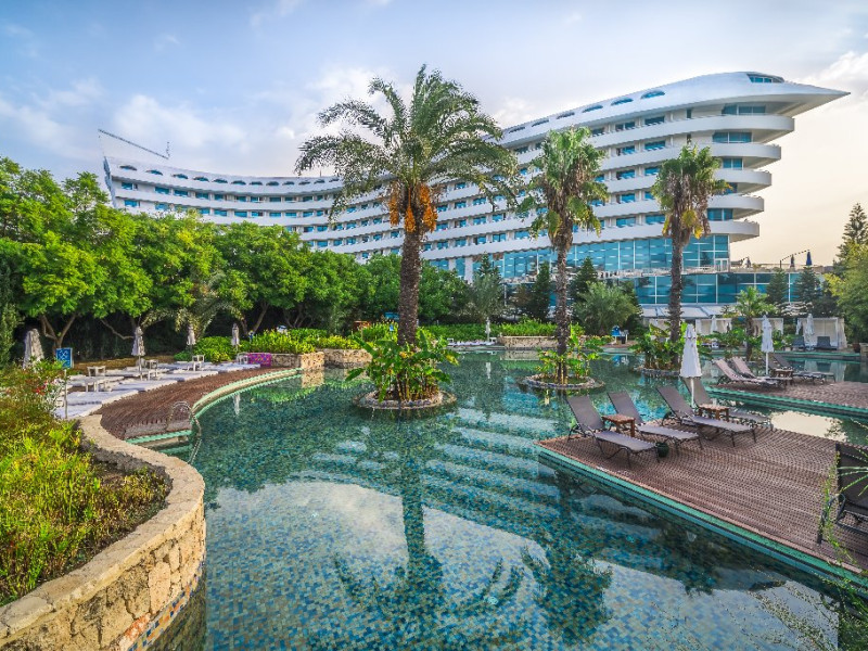 Facilitati hotel: Hotelul ofera oaspetilor sai urmatoarele facilitati: restaurant principal, 6 restaurante a la carte, gozleme, 10 baruri, piscina exterioara principala, piscina exterioara pentru relaxare cu 3 jacuzzi, 2 piscine pentru copii, aquapark, piscina interioara, jacuzzi, baie turceasca, centru fitness, programe de animatie, discoteca, muzica live, mini golf, tenis de masa, volei pe plaja, fotbal, basket, darts, internet cafe, sali de conferinta.