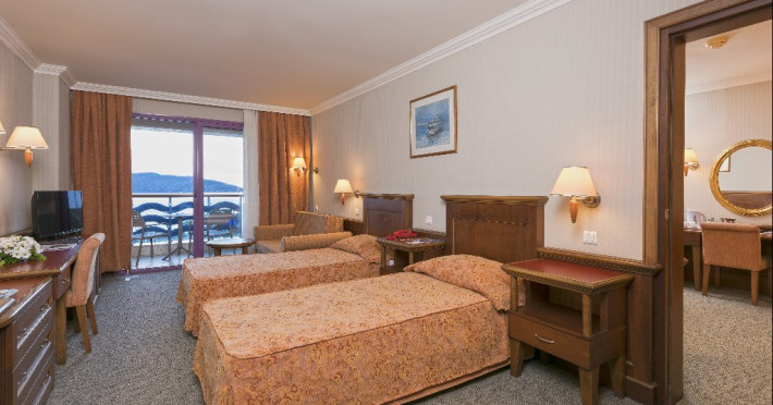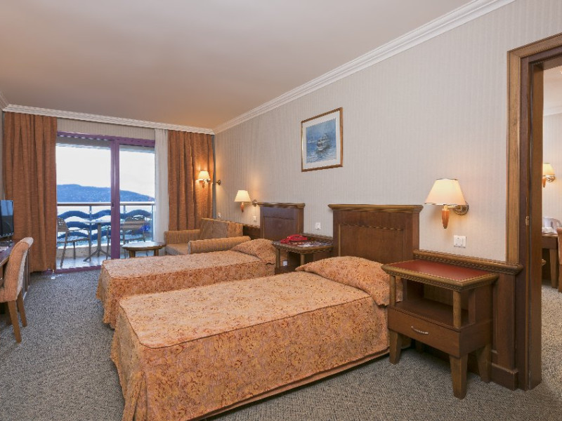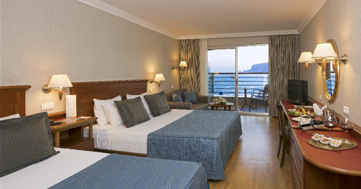 Cu ferestre din podea până în tavan, camerele Hotelului Grand Kaptan au aer condiționat, mobilier din lemn și pardoseală mochetată. Toate camerele sunt dotate cu minibar, facilități pentru prepararea de ceai și cafea și TV prin satelit.