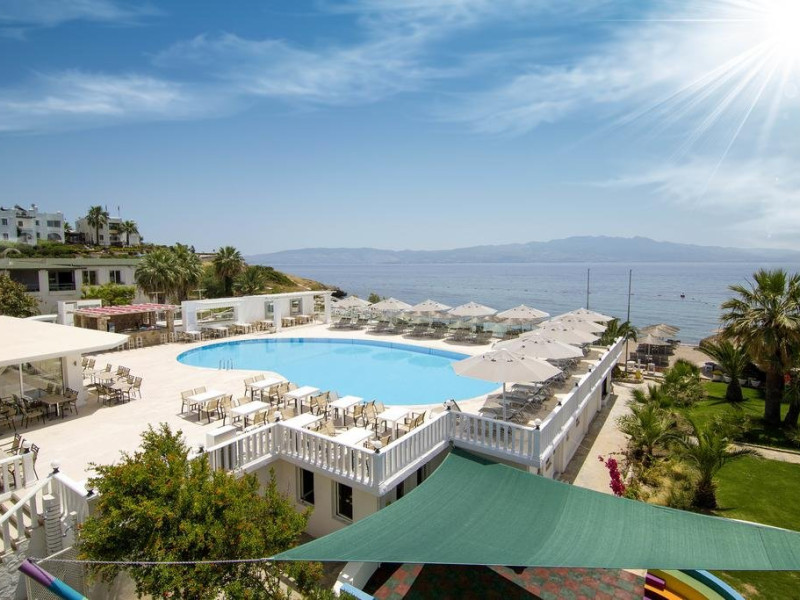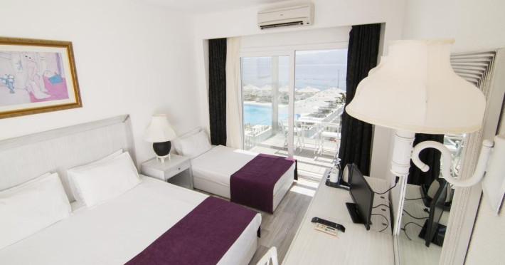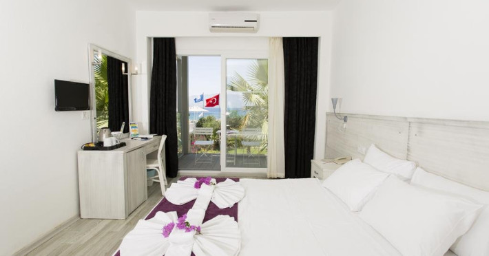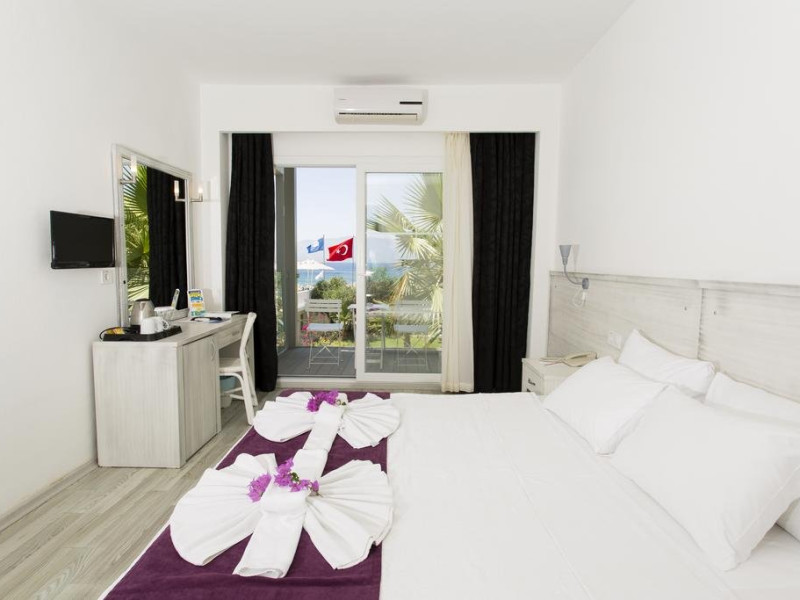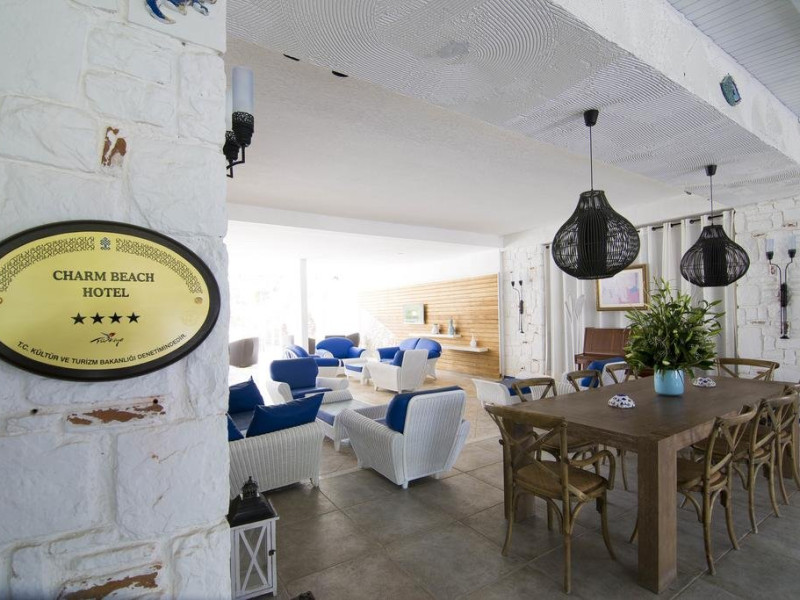 Facilitati hotel: Hotelul pune la dispozitia turistilor zona cu gradini bine intretinute, restaurant principal si a-la-carte, baruri la piscina si pe plaja, piscina exterioara, baie turceasca (contra cost), centru SPA (contra cost), sauna (contra cost), programe de divertisment, sporturi nautice si jocuri pe timpul zilei (contra cost). Oaspetii pot juca biliard, tenis de camp si tenis de masa la hotel (contra cost). Dotari camere: Camerele sunt dotate cu parchet laminat, aer conditionat, TV prin satelit, fierbator cafea/ceai, telefon, minibar, baie privata cu dus si uscator de par. Site web: http://www.charmbeachhotel.com/