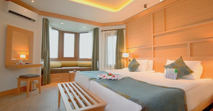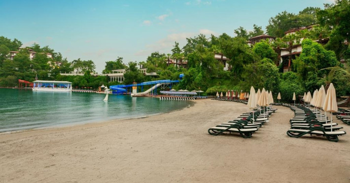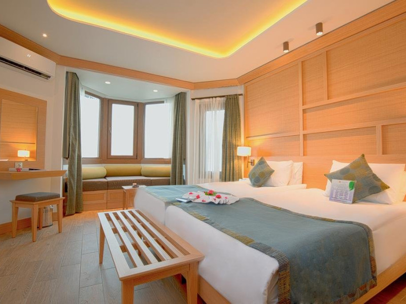 Dotari camere: Camerele hotelului sunt localizate in cladirea principala sau in bungalourile raspindite in gradina hotelului. Hotel Room: 18-22m2, pardoseala ceramica, dus, telefon direct, aer conditionat centralizat, uscator de par, TV satelit LCD, seif, mini bar, facilitati ceai / cafea, balcon, halat si papuci, capacitate maxima: 2+2, 3+1 Bungalow Room: 20m2, pardoseala ceramica, dus, telefon direct, aer conditionat individual, uscator de par, TV satelit LCD, seif, mini bar, facilitati ceai / cafea, balcon clasic sau balcon stil otoman, halat si papuci, capacitate maxima: 2+1, 3. Hotelul dispune si de alte tipuri de camere, care pot fi oferite la cerere, in functie de disponibilitati: Bungalow Jr. Suite: 24-28m2, pardoseala ceramica, dus, telefon direct, aer conditionat individual, uscator de par, TV satelit LCD, seif, mini bar, facilitati ceai / cafea, balcon clasic sau pavilion, halat si papuci, capacitate maxima: 2+2, 3+1. Villa: duplex 120m2, pardoseala laminata si ceramica, 2 dormitoare, living, 2 dusuri si 2 toalete, chicineta (dotata cu hota, ventilator si facilitati ceai / cafea), telefon direct, aer conditionat individual, uscator de par, TV satelit LCD, seif, mini bar, 2 balcoane cu vedere la mare si la piscina, halat si papuci, capacitate maxima: 2+4, 4+2. Facilitati hotel: restaurante (Moonlight, Lykia, Marina, Dolphin Beach Restaurant, Fantasia Restaurant), restaurante a-la-carte (Dolphin, Kebabci, Panorama), baruri (Lobby Bar, Turkish Coffee, Marina Bar, Dolphin Beach Bar, Panorama Bar, Agora Bar, Moonlight Disco Bar, Champagne Beach Bar, Nargile Bar), plaje proprii cu nisip fin, fundul apei cu pietricele, (Marina, Champagne, Dolphin) cu ponton, hamace, sezlonguri, umbrele, dus, 3 piscine separate din care 2 au sectiuni dedicate copiilor, o piscina pentru copii mici cu tobogane, 1 piscina interioara cu apa sarata la SPA, jacuzzi si 3 tobogane mari, supravegheate, de 10 m inaltime, cu iesire in mare. Contra cost: utilizarea portului pentru ambarcatiuni private, restaurantele a-la-carte, baby-sitting, narghilea si pipa la Hookah Cafe, servicii spalatorie si calcatorie, coafor si servicii infrumusetare, fotograf, inchirieri auto, fax si copiator, market, boutique, magazin suveniruri, magazin bijuterii, magazin articole din piele, doctor, ambulanta. Sport: Incluse in concept: centru fitness, aerobic, gimanastica, stretching, step, yoga, tae bo, jogging, basketball, mini soccer, volei pe plaja, sah, darts, boccia, badminton, tir, 6 terenuri de tenis (gratuit rachete), tenis de masa, mini golf, mini sah, biliard. Contra cost: nocturna si lectii de tenis, paragliding, ciclism, jeep safari, bungee jumping, motorcross, vanatoare. Divertisment: intreceri de zi la piscina si plaja, spectacole seara, dansuri anatoliene, comedii clasice, petreceri pe plaja cu DJ, artificii, muzica live de la jazz la muzica populara, discoteca in aer liber sau acoperita. Letoo Kids Club: include: Mini Club (4-12 ani), Mini Disco, Junior Club (12-16 ani), babysitting pentru infanti. Pagina web: http://www.letoonia.com/en-gb/letoonia-en/club-hotel-letoonia-fethiye.aspx