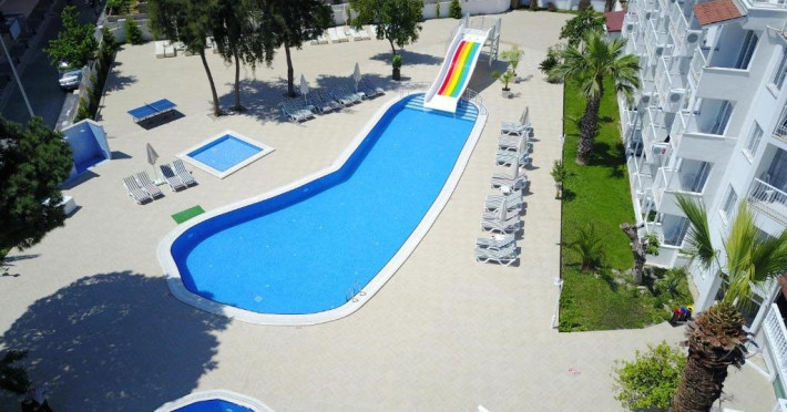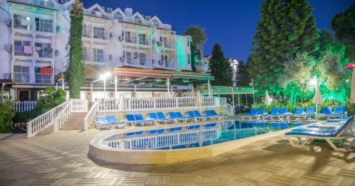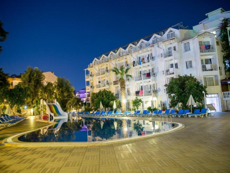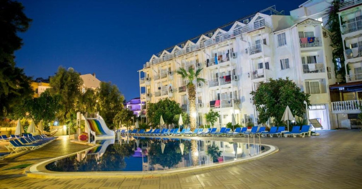 Localizare: Hotelul este situat in statiunea Marmaris, la 100 de metri de Marea Mediterana. Castelul din Marmaris este la 700 de metri, iar centrul orasului se afla la 300 de metri. Plaja propie cu nisip, bar la plaja si la piscina, pe plaja umbrele si sezlonguri. Facilitati hotel: Hotelul pune la dispozitia turistilor restaurant, bar, receptie 24 de ore, gradina, lift, seif, depozit bagaje, aer conditionat, snack bar, terasa, spalatorie, curatatorie, serviciu de calcat, inchirieri auto, Fax / copiator, internet WI FI, facilitati de gratar, baie turceasca, sauna, jacuzzi si masaj. Activitati: loc de joaca pentru copii, biliard, tenis de masa, darts, piscina in aer liber. Copiii: 3 piscine, 3 tobogane, loc de joaca, mini-club, babysitter (contra cost), carucior (cu garantie).