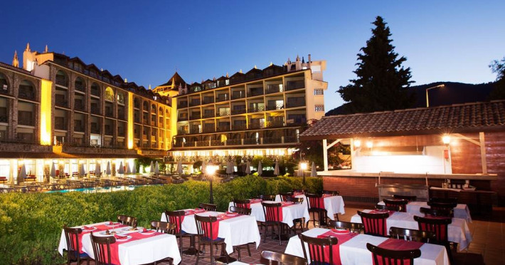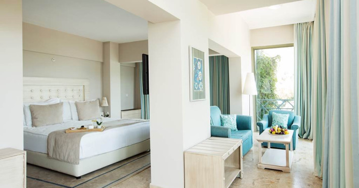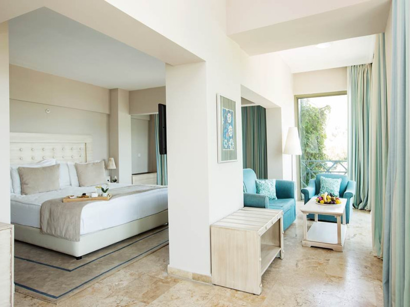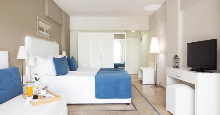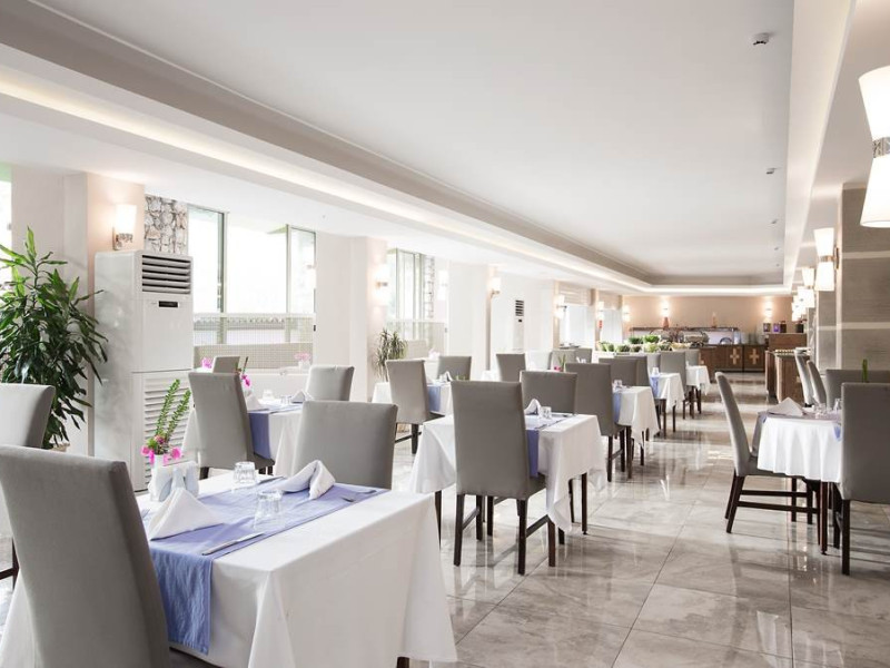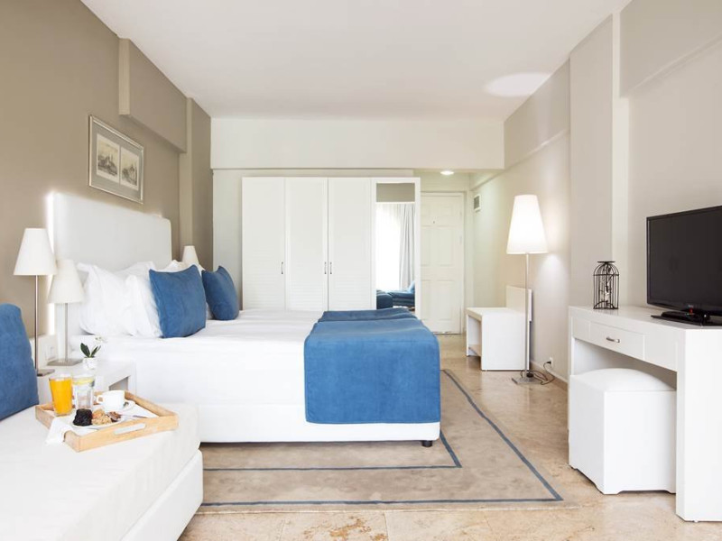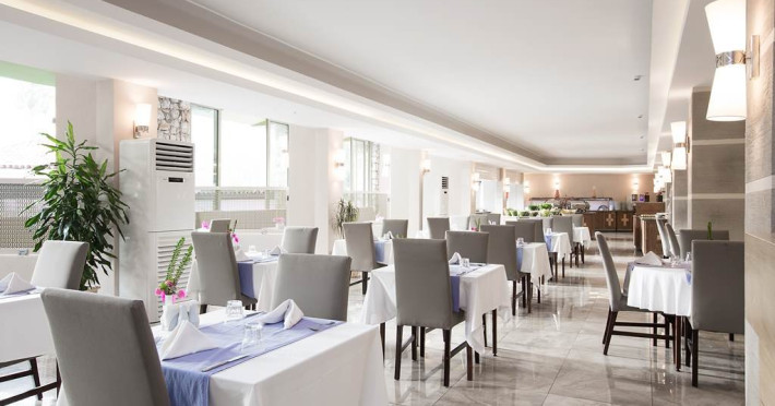 Camerele sunt dotate cu aer conditionat centralizat (minim 15 ore/zi), telefon, uscator de par, sistem de incalzire, minibar, pardoseala din gresie, balcon, Tv cu cablu, baie cu cada. Piscina exterioara, piscina pentru copii, 2 lifturi, tobogan de apa, restaurant interior, restaurant exterior, bar la piscina, snack bar (la piscina), loc de joaca pentru copii, mini club (intre 4-12 ani), mini disco, aer conditionat in spatii publice, tv cu cablu in receptie, echipa de animatie, coafor, spalatorie sunt cu plata. Hotelul are plaja privata, cu nisip si pietris, cu o lungime de 100 metri si latime de 40 metri, certificata cu steagul albastru 'Blue Flag', sezlongurile, umbrelele, saltelele, prosoapele sunt gratuite.