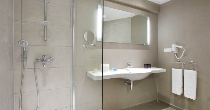 Hotelul are 6 etaje, 138 camere duble (18 m2, pentru 2+1 persoane), 50 camere triple (20 m2, pentru 3 persoane), 7 camere familiale (34 m2, pentru 4 persoane), 2 camere pentru persoanele cu dizabilitati (18 m2, pentru 2 persoane), iar din acestea 79 camere sunt cu vedere la mare, iar 118 camere sunt cu vedere la gradina.