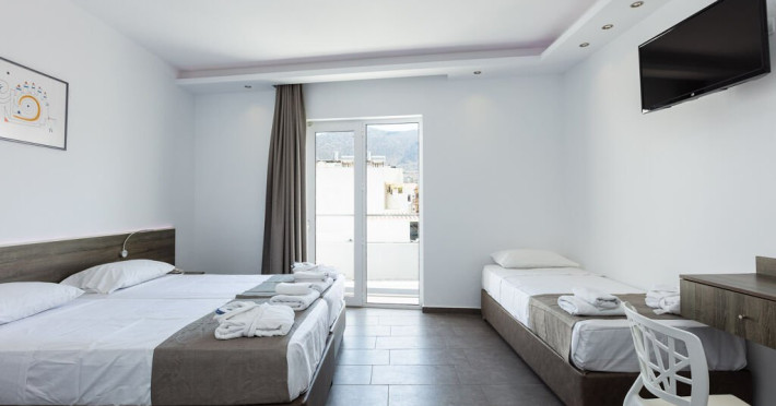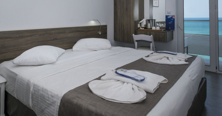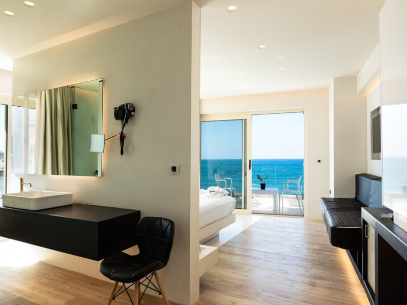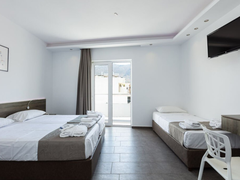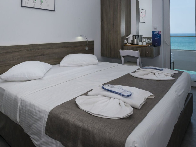 Descriere: Are o cladire principala cu camere cu vedere panoramica la mare sau vedere la orasul Hersonissos Oaspetii se pot bucura de un bar restaurant pe plaja, o sectiune de plaja a hotelului si o piscina. Un jacuzzi pe acoperis si un Centrul spa este, de asemenea, oferit oaspetilor care doresc un plus de relaxare si rasfat.