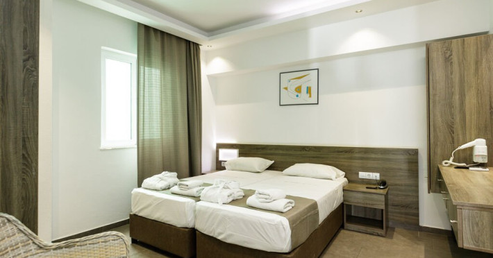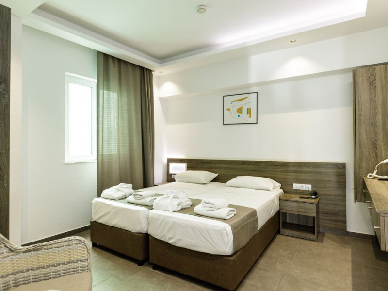 Facilitati hotel: Receptie 24 de ore, hol, lounge TV, camera pentru bagaje, Wi-Fi in zonele publice (gratuit), piscina in aer liber (08:00-19:00), sezlonguri si umbrele (gratuit la piscina, cu un cost suplimentar de 10 EUR de persoana per set la plaja), prosoape de piscina/plaja ,terasa , dus exterior, cabina de schimbare pentru plaja , parcare publica. (gratuita), medic de garda (contra cost).
