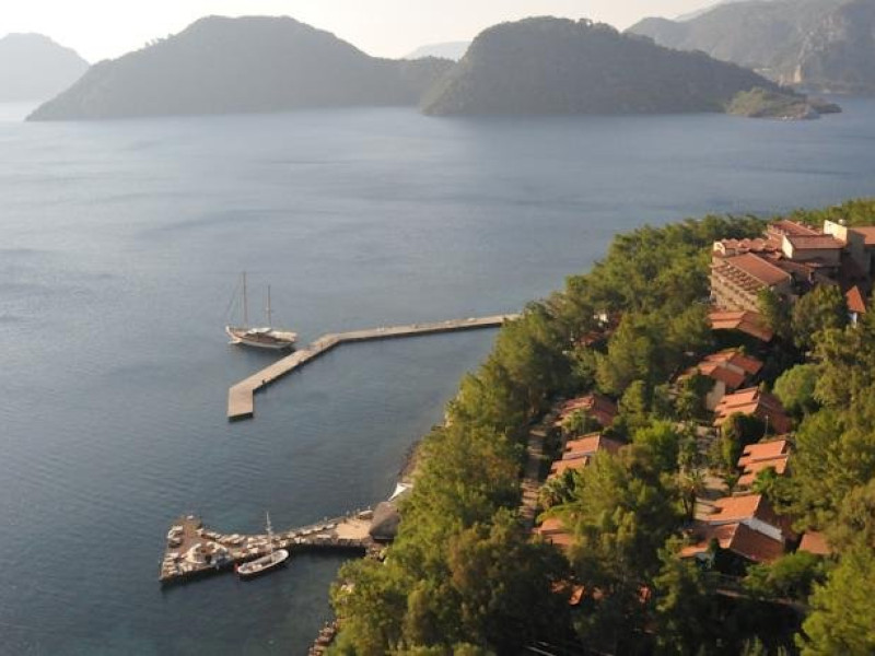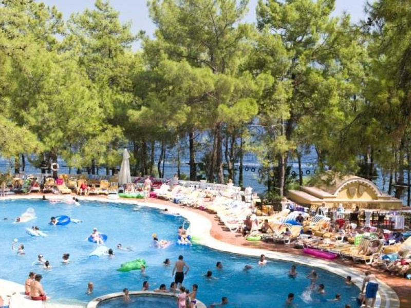 Localizare: Hotelul este situat pe plaja, la 3 km de orasul Icmeler, 5 km de Marmaris si 142 km de aeroportul din Bodrum. Cazare: Hotelul pune la dispozitia turistilor diferite tipuri de camere precum: Camere bungalow garden view: camerele au un pat matrimonial, un pat de o persoana, baie, balcon, pardoseala este acoperita cu marmura. Capacitatea camerelor este de 3 adulti si 1 copil. Au vedere la gradina. Camere main building land view: sunt situate in cladirea principala, sunt disponibile atat camera cu paturi twin cat si camera cu pat matrimonial. Sunt dotate cu baie cu toaleta, seif, balcon cu vedere la gradina sau imprejurimi, incalzire si sistem de racire centralizat, telefon direct, minibar-gol, tv prin satelit, gresie pe jos. Camere bungalow sea view: camerele au un pat matrimonial, un pat de o persoana, baie, balcon, pardoseala este acoperita cu marmura. Capacitatea camerelor este de 3 adulti si 1 copil. Au vedere la mare. Camere main building sea view: sunt situate in cladirea principala, sunt disponibile atat camera cu paturi twin cat si camera cu pat matrimonial. Sunt dotate cu baie cu toaleta, seif, balcon cu vedere la mare, incalzire si sistem de racier centralizat, telefon direct, minibar-gol, tv prin satelit, gresie pe jos. Camere family land view: au doua dormitoare cu usa despartitoare, cu o capacitate de maximum 4 adulti si 1 copil. Sunt dotate cu un pat dublu, o canapea extensibila si o canapea care se poate transforma in pat, au o baie si un balcon, pardoseala din marmura sau ceramica. Au vedere la gradina. Servicii: All inclusive Facilitati: Hotelul dispune de 4 restaurante, dintre care 1 a la carte si 6 baruri. Plaja si piscine: Plaja cu nisip, pietris si ponton. Hotelul ofera 4 piscine exterioare si o piscina interioara. Sporturi si activitati: Fara plata: concursuri si activitati pe tot parcursul zilei, boccia, volei pe plaj, gimnastic, gimnastica in apa, jogging, aerobic-step, billiard, joc de table, bingo, jocuri de carti, filme video de la tv in camere o dat pe zi. Cu plata: banana, jet ski, parasailing. Pagina web: www.grandyazicihotels.com/en/
