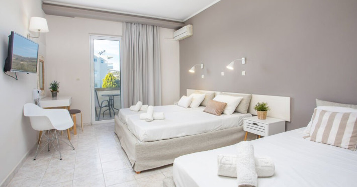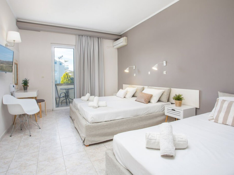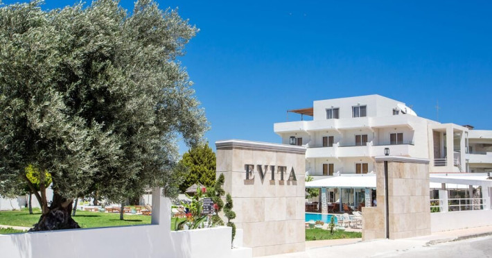 Descriere: Construit in 2001, hotelul este administrat de o familie. Hotelul a fost renovat partial in 2018. Localizare: intr-o zona linistita din Faliraki, inconjurat de o livada de maslini, la aproximativ 1,5 km de plaja si 16 km de aeroport. Dotari camere: aer conditionat, acces internet WiFi (gratuit), seif (contra cost), televizor, mini frigder, uscator de par, balcon/terasa. Facilitati hotel: restaurant, snack bar, piscina, sezlonguri si umbrele (gratuite la piscina si contra cost la plaja). Hotelul nu are patuturi pentru bebelusi. Clasificarea oficiala: 3 chei Website: www.evitastudios.gr Nota informativa: Pentru anumite facilitati din hotel sau din camera, hotelierul poate solicita taxe suplimentare. In momentul sosirii la hotel solicitati receptionerului sa va informeze cu exactitate asupra lor. Taxa de statiune obligatorie - se plateste la receptie