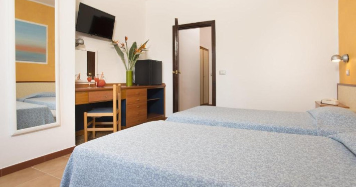 Dotari camere: 120 camere echipate cu balcon, baie cu dus, TV flat, seif (gratuit), frigider, aer conditionat manual. Camerele duble au 18m2, iar cele single au 10m2. Camerele pentru patru persoane, au pat matrimonial si 2 paturi suprapuse. Atentie! Infantul 0-1.99 doarme in pat cu parintii, baby-cot, la cerere, se plateste local: aprox. 10 euro / zi.