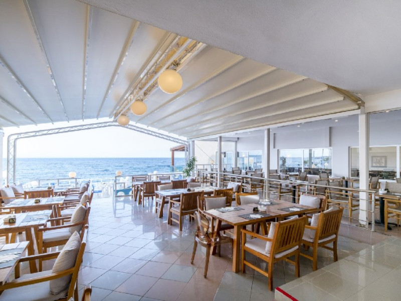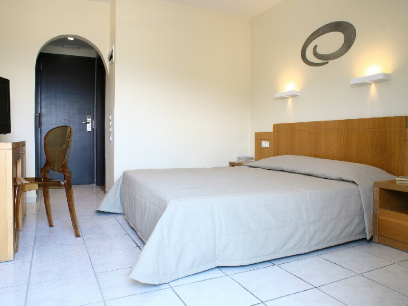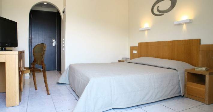 Dotari camere: Toate cele 161 de camere sunt de 5 categorii: camere duble cu uz de single de 13 mp (max 1 pax), camere duble de 15 mp (max 2+1 pax), camere duble cu vedere la mare sau partial la mare de 15 mp (max 2 pax), camere duble panoramice de 17 mp (max 2+1 pax) si camere family fara separare de 21 mp (max 2+2 pax). Toate camerele au un design minimalist si sunt dotate cu aer conditionat, wi-fi gratuit, televizor satelit, seif (cu plata), frigider, telefon (cu plata), baie cu dus sau cada, uscator de par, balcon/terasa.