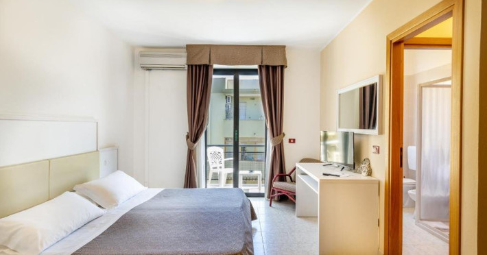 Dotari camere: hotelul dispune de 80 de camere, situate in cladirea principala si dotate cu telefon, Tv, minibar, aer conditionat, incalzire, baie, uscator de par, safe. Atentie! Infantul 0-1.99 doarme in pat cu parintii, baby-cot, la cerere, se plateste local: 8 euro / zi.