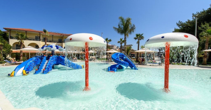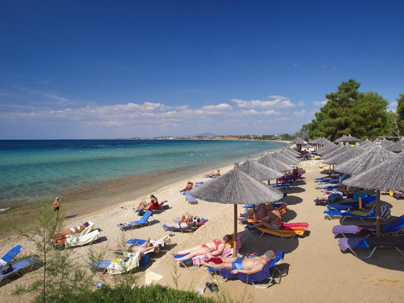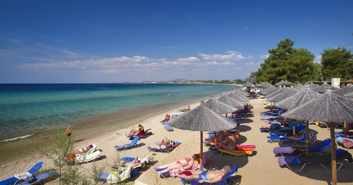 Resortul este situat in zona Nea Potidea, chiar pe plaja, inconjurat de gradini pline de flori si paduri de pini. Dotari camere confortabile si moderne, cu privelisti minunate asupra marii albastre si asupra Muntelui Olimp.